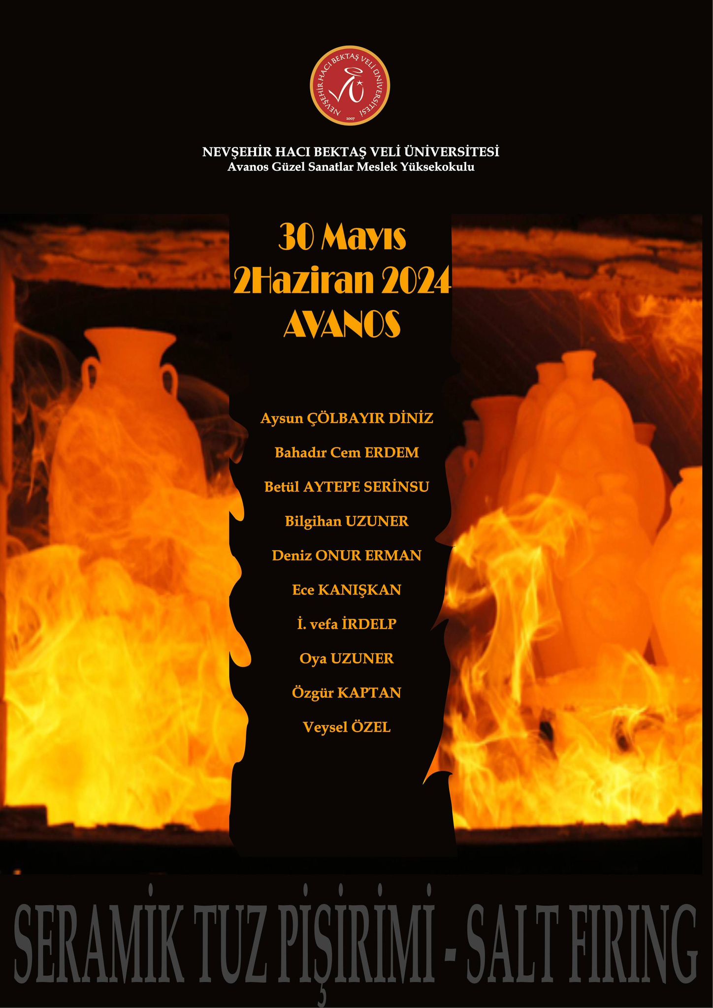 NEVÜ Avanos Güzel Sanatlar MYO Müdürü Öğr. Gör. Bahadır Cem Erdem koordinesinde 30 Mayıs – 02 Haziran 2024 tarihlerinde düzenlenen etkinlik, Avanos Seramik Fırın Parkında yer alan Tuz Fırınına farklı yöntemler ve renklendirilen seramik eserlerin yerleştirilmesiyle başladı. Alternatif seramik pişirim yöntemlerinden biri olan tuz fırını, odun yakıt kullanılarak 10 saat süre içerisinde 1300 dereceye ulaştı. Bir gün soğuması beklenen fırının boşaltılmasının ardından, fırından çıkan işler değerlendirilerek katılımcılara belgeleri verildi.