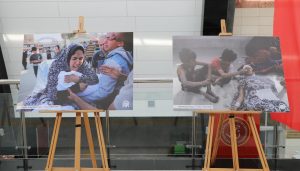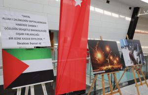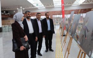 Her bir fotoğraf karesine acı, zulüm ve çaresizliğin yansıdığı sergiyi katılımcılar ile gezerek bilgi alan Rektör Prof. Dr. Semih Aktekin, Filistin’de İsrail’in 7 Ekim 2023 tarihinden beri aralıksız olarak yaptığı soykırıma her platforma tepki göstermeye devam ettiklerini söyledi.