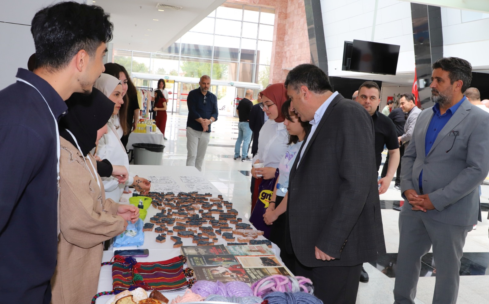 Üniversite yönetimi ile birlikte stantları ziyaret eden Rektör Prof. Dr. Semih Aktekin, hem öğrenci kulüp ve topluluklarından hem de personelden etkinliğin işleyişi hakkında bilgi aldı.