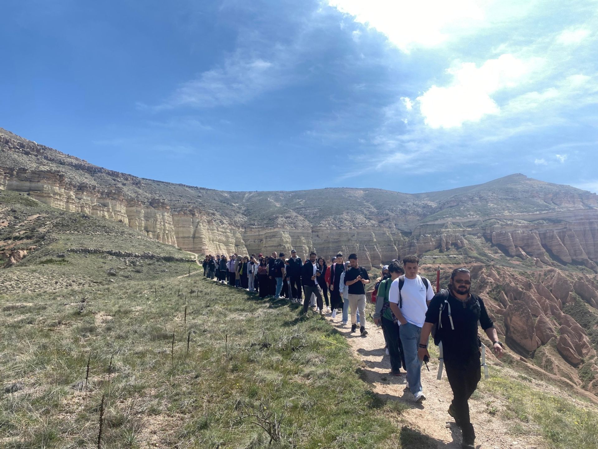 Nevşehir Hacı Bektaş Veli Üniversitesi (NEVÜ), 23 Nisan Ulusal Egemenlik ve Çocuk Bayramı’nı bu yıl Kapadokya’nın benzersiz doğasında düzenlediği özel bir etkinlikle kutladı. Üniversitenin Kariyer Planlama Uygulama ve Araştırma Merkezi ile Dağcılık ve Doğa Sporları Kulübü iş birliğinde gerçekleştirilen “Milli Egemenlik Yürüyüşü”, Kızılçukur Vadisi’nde 84 katılımcıyı bir araya getirdi.