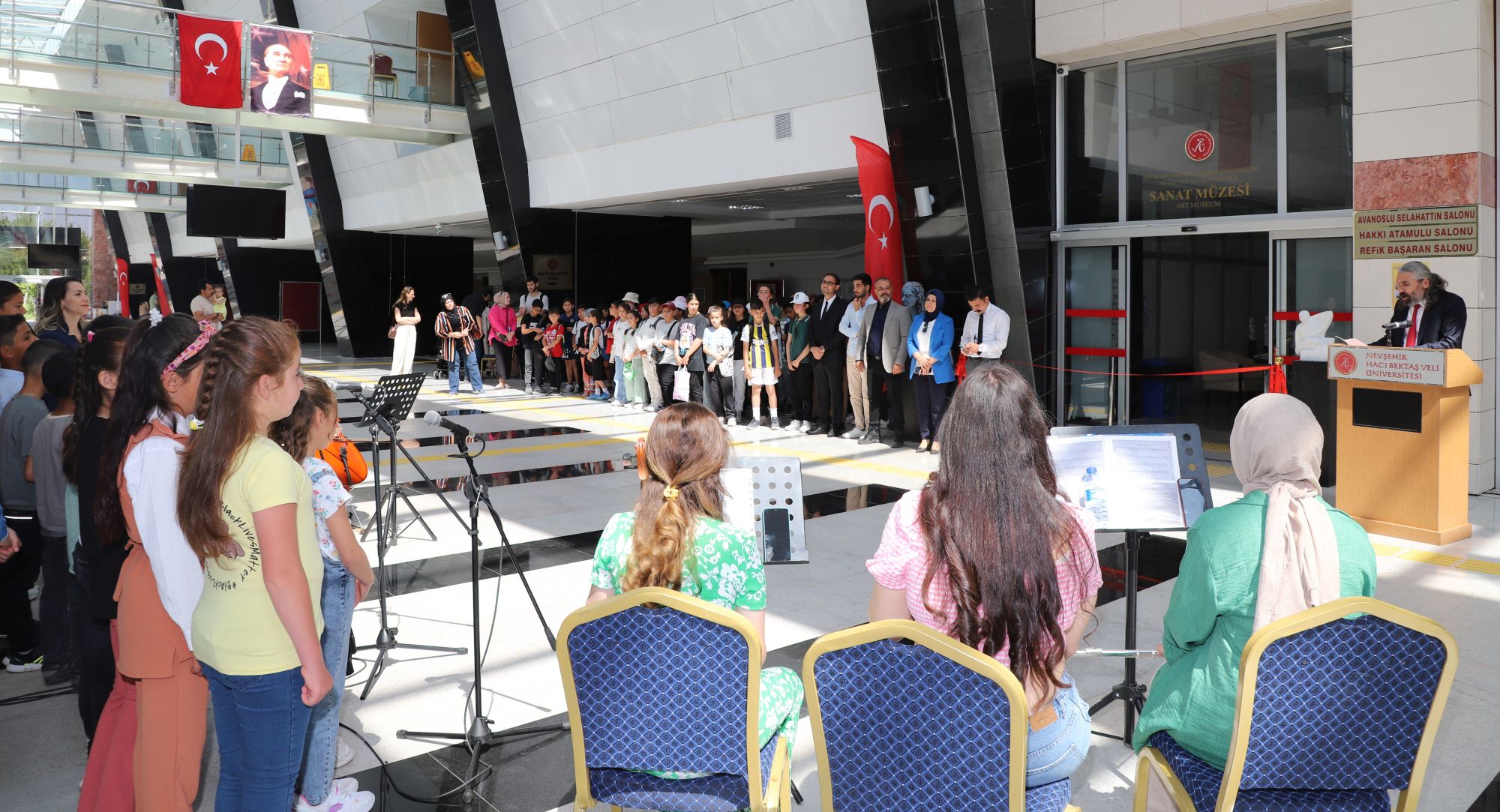 NEVÜ Vali Şinasi Kuş Kültür ve Kongre Merkezi’nde düzenlenen serginin açılışına; NEVÜ Rektör Yardımcısı Prof. Dr. Şahlan Öztürk, Nevşehir İl Milli Eğitim Şube Müdürü Gülizar Ergin, NEVÜ Çocuk Eğitimi Uygulama ve Araştırma Merkezi Müdürü Prof. Dr. Mustafa Tahiroğlu, Eğitim Fakültesi Müzik Eğitimi Anabilim Dalı Başkanı Prof. Dr. Emin Erdem Kaya, Balcın İlkokulu Müdürü Kenan Şahin, Balcın İlkokulu öğretmen ve öğrencileri, Nevşehir merkez Gazi Ortaokulu öğretmen ve öğrencileri katıldı.