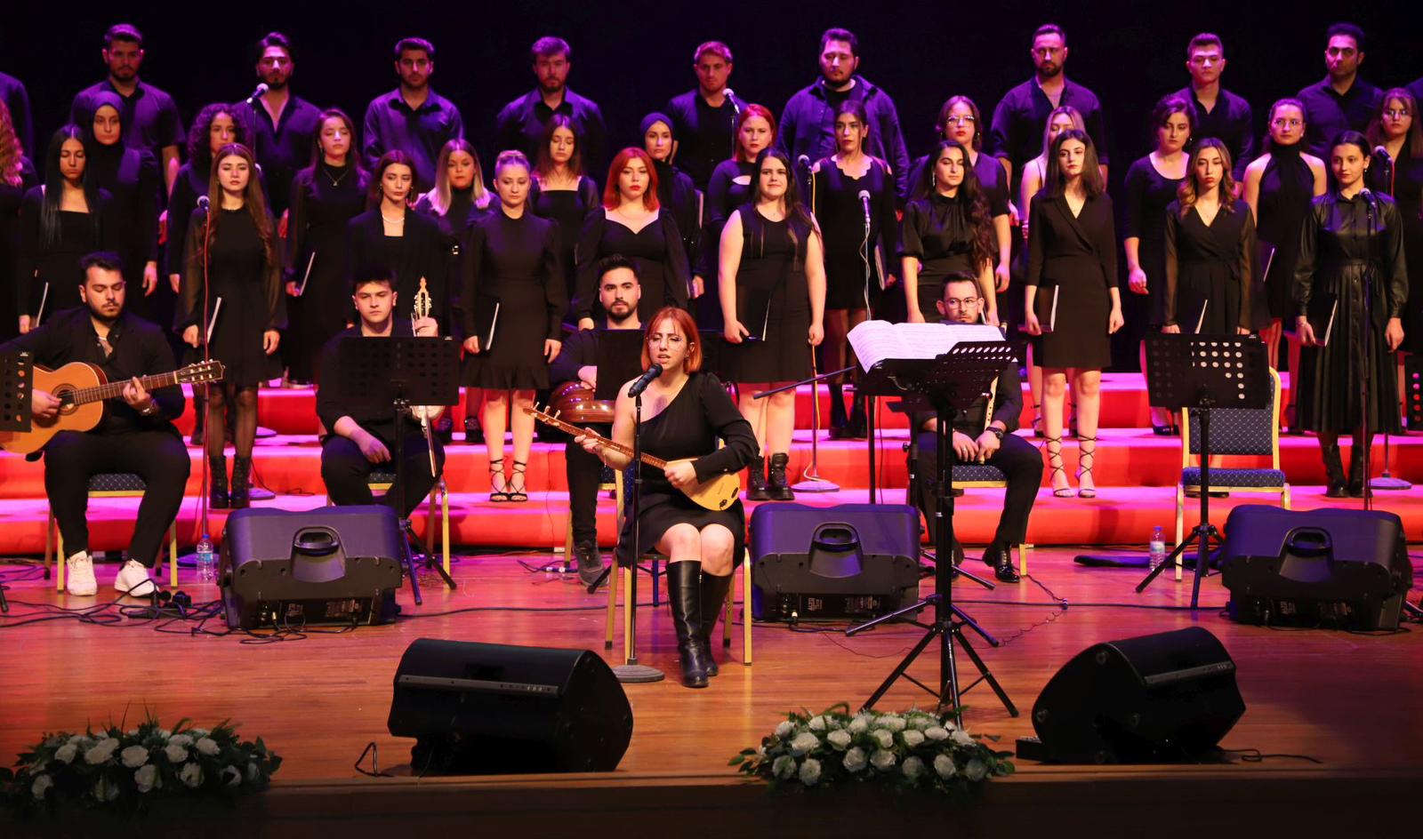 Prof. Dr. Emin Erdem Kaya’nın yönettiği konserin ikinci bölümünde orkestra eşliğindeki sahne alan koro ekibi ve solistler ise ‘Güzel Seni Çok Özledim’, ‘Neçedir Ağlarsın’, ‘Abalımın Cepkeni’, ‘Elif Dedim Be Dedim’, ‘Şu Kışlanın Kapısına, ‘Şu Yalan Dünyaya Geldim Giderim’, ‘Dirmilcik’ten Gider Yaylanın Yolu’, ‘Taşa Çaldım Ayvam İle Narımı’, ‘Gölbaşına Vardım Gülleri Çoktur’ ve ‘Çubuğuna Lüleyim’ isimli birbirinden güzel türküleri seslendirdi.