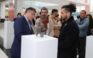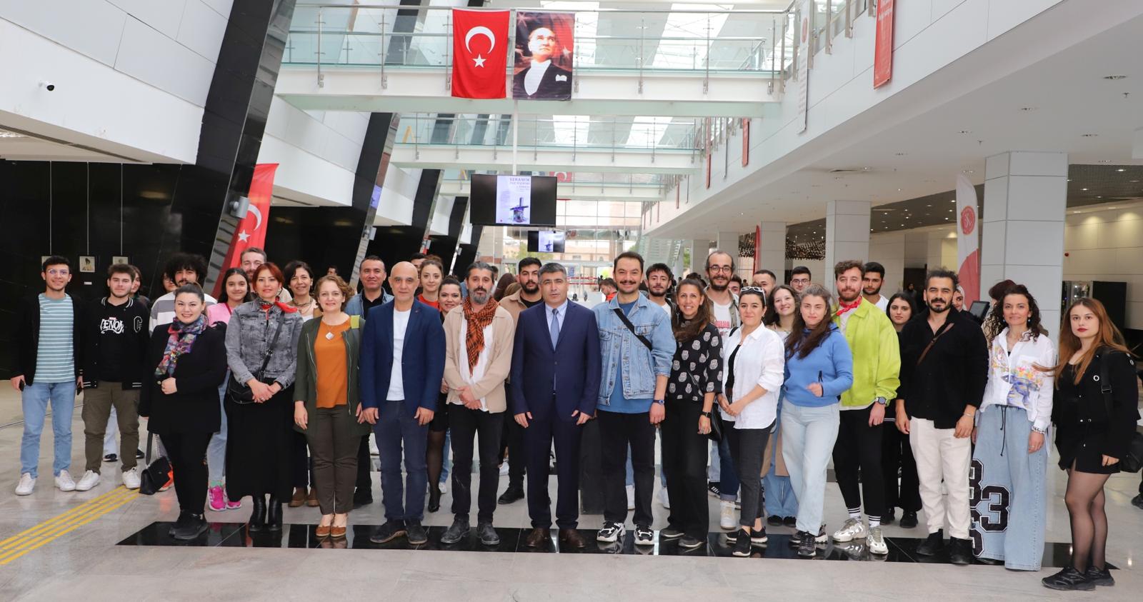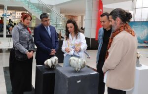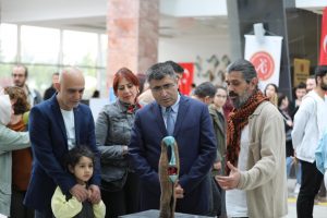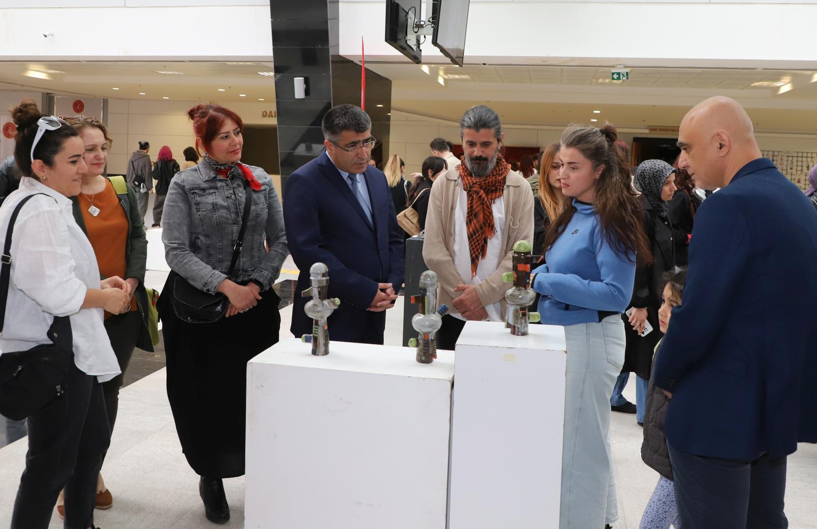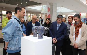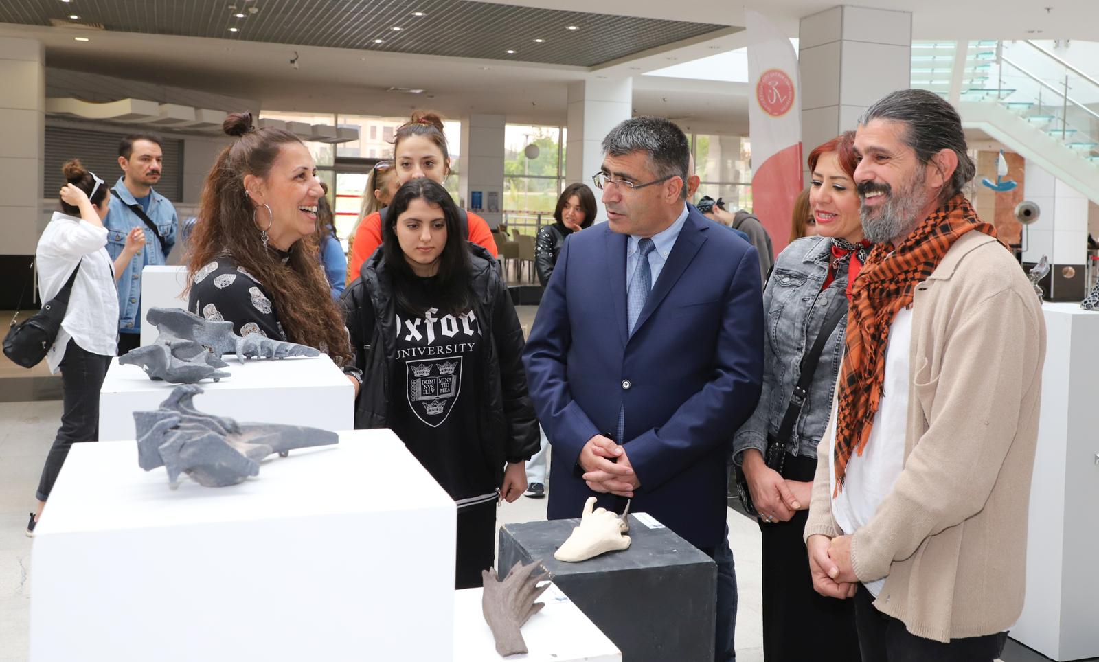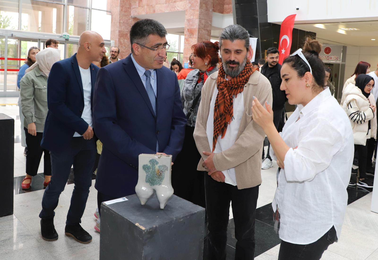 Katılımcılar eşliğinde sergide yer alan eserleri gezerek bilgi alan Rektör Aktekin, sergi sonunda eserleri bulunan sanatçı akademisyenlere belgelerini verdi.