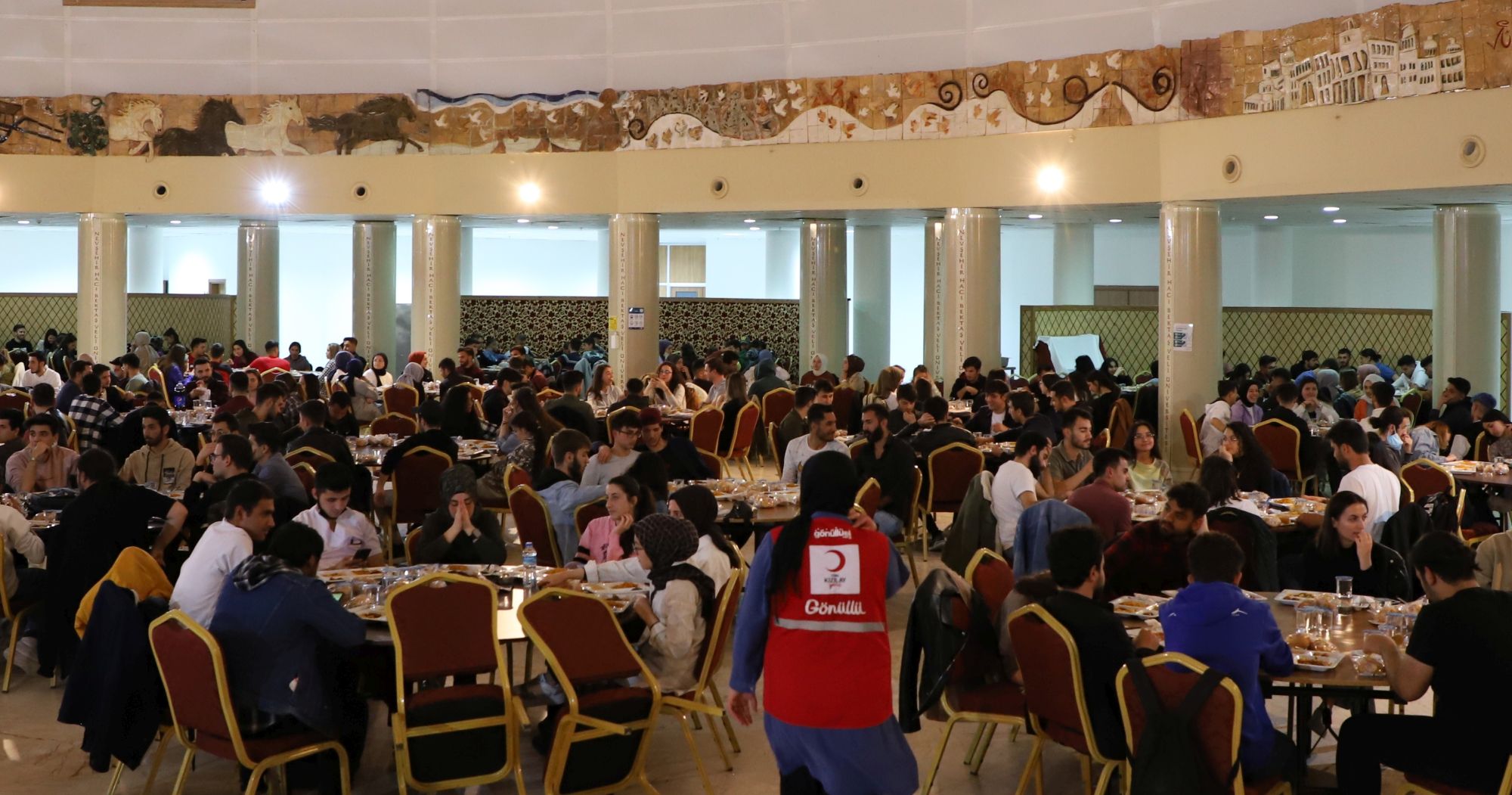 Nevşehir Hacı Bektaş Veli Üniversitesi (NEVÜ)’nün ‘Ramazan Ayı’ boyunca Nevşehir Valiliği, Nevşehir Ticaret ve Sanayi Odası, Türk Kızılay Nevşehir Şubesi ve Nevşehirli hayırseverlerin katkıları ile üniversitede eğitim gören öğrenciler için başlattığı ücretsiz ‘İftar Yemeği’ ikramının ilki gerçekleştirildi.