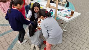 Sanat-2 İstasyonu’nda (Resim) “Yüz Boyama Etkinliği”nde çocukların yüzleri boyanırken, “Tuval Üzerine Resim Yapma Etkinliği’’ ile çocuklarla birlikte tuval üzerine istedikleri bir resim yapıldı. “Çizim Tahmin Etme Etkinliği”nde ise çocukların çizimleri tahmin etmeleri sağlandı.