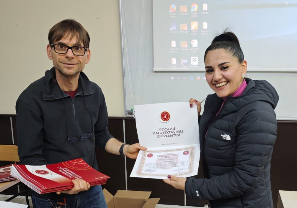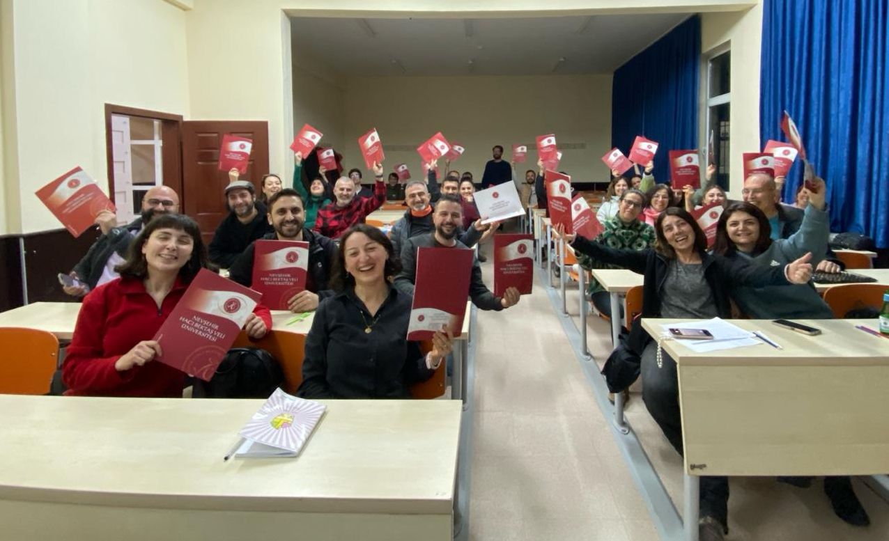 Nevşehir Hacı Bektaş Veli Üniversitesi (NEVÜ) Sürekli Eğitim Uygulama ve Araştırma Merkezi (NEVSEM) tarafından Nevşehir Rehberler Odasına kayıtlı olan profesyonel turist rehberlerine yönelik olarak düzenlenen ‘Kapadokya Bölgesi Doğal ve Kültürel Miras Uzmanlaşma Eğitimi’ başarıyla tamamlandı.