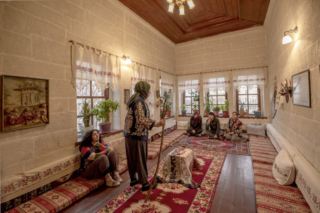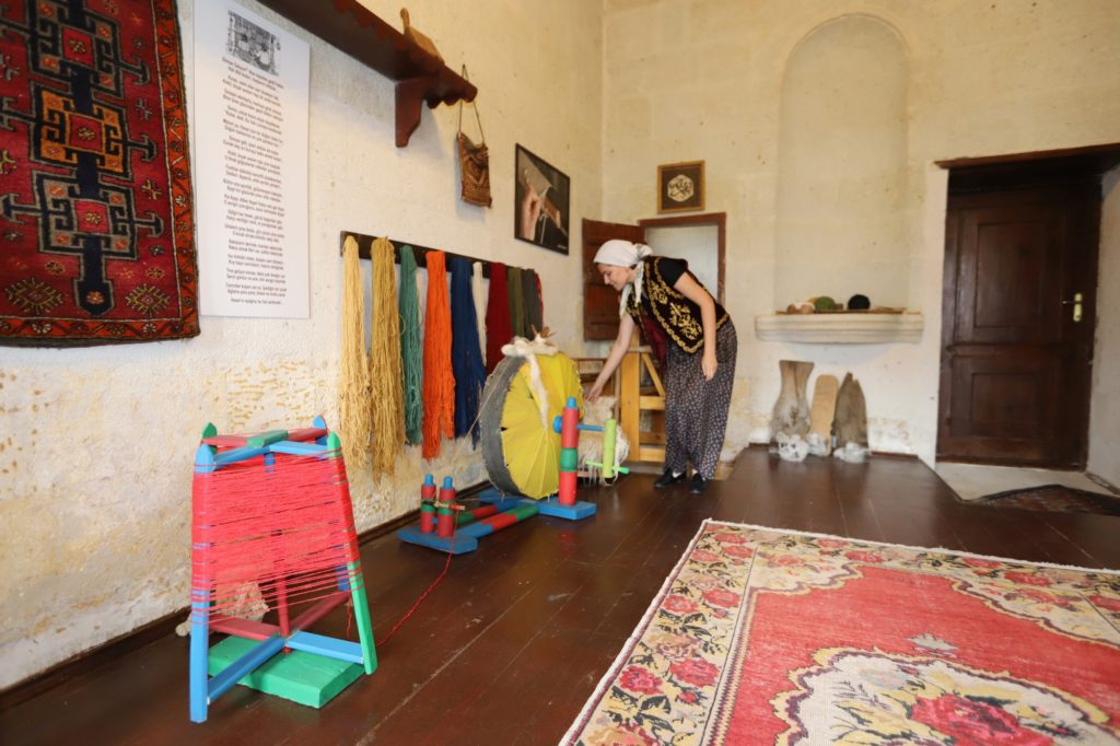 Dokuma odasında, Avanos halılarının hikâyesini dinleyerek dokuma tezgâhında mekik dokuyabilir, halıya bir ilmek de siz atabilirsiniz. Gelin odasında düğün geleneklerini dinlerken belki siz de bahtınızı açtırabilirsiniz.