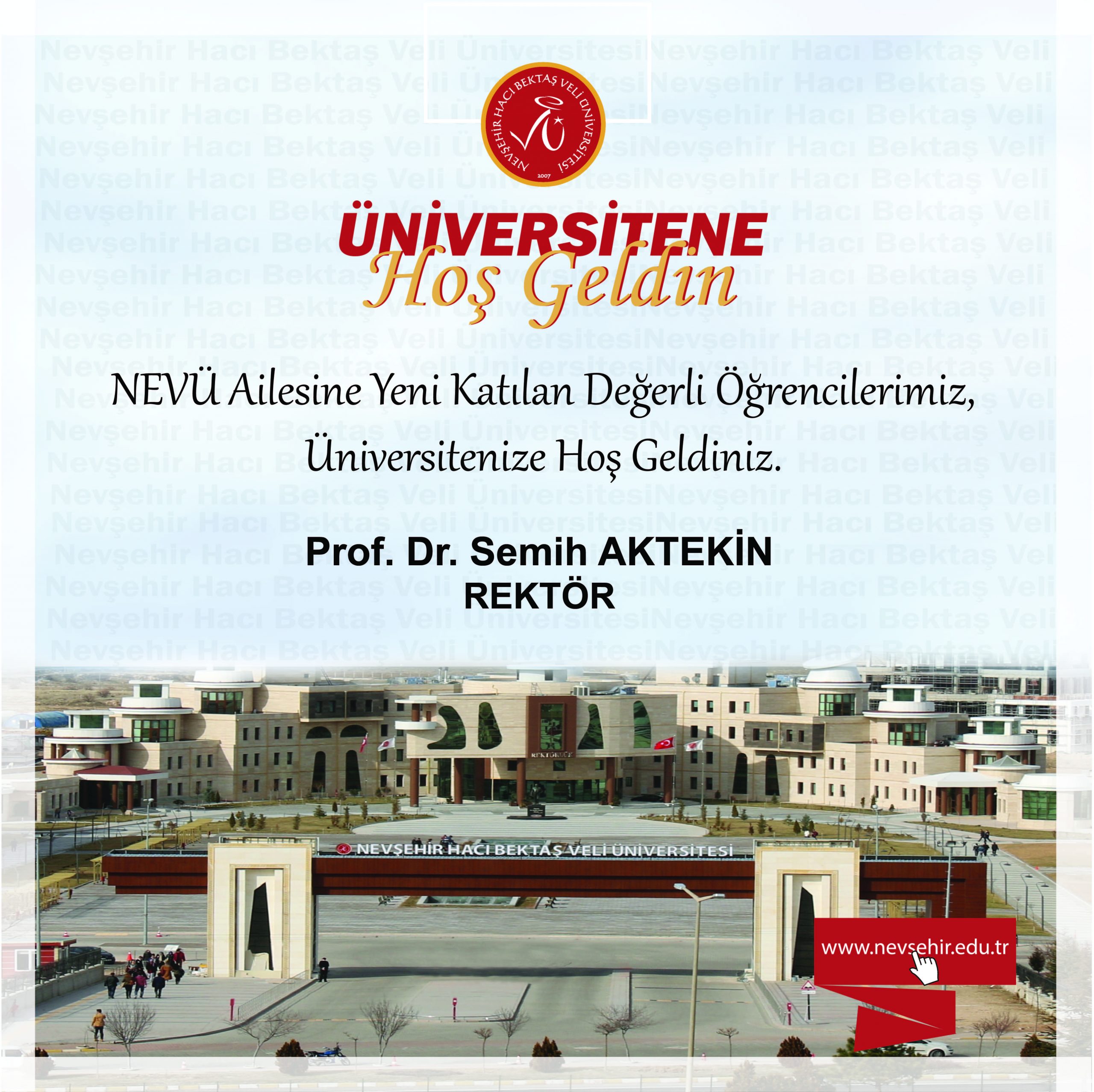 Nevşehir Hacı Bektaş Veli Üniversitesi (NEVÜ) Rektörü Prof. Dr. Semih Aktekin YKS tercihleri sonucu NEVÜ’yü kazanan öğrenciler için bir mesaj yayınladı.