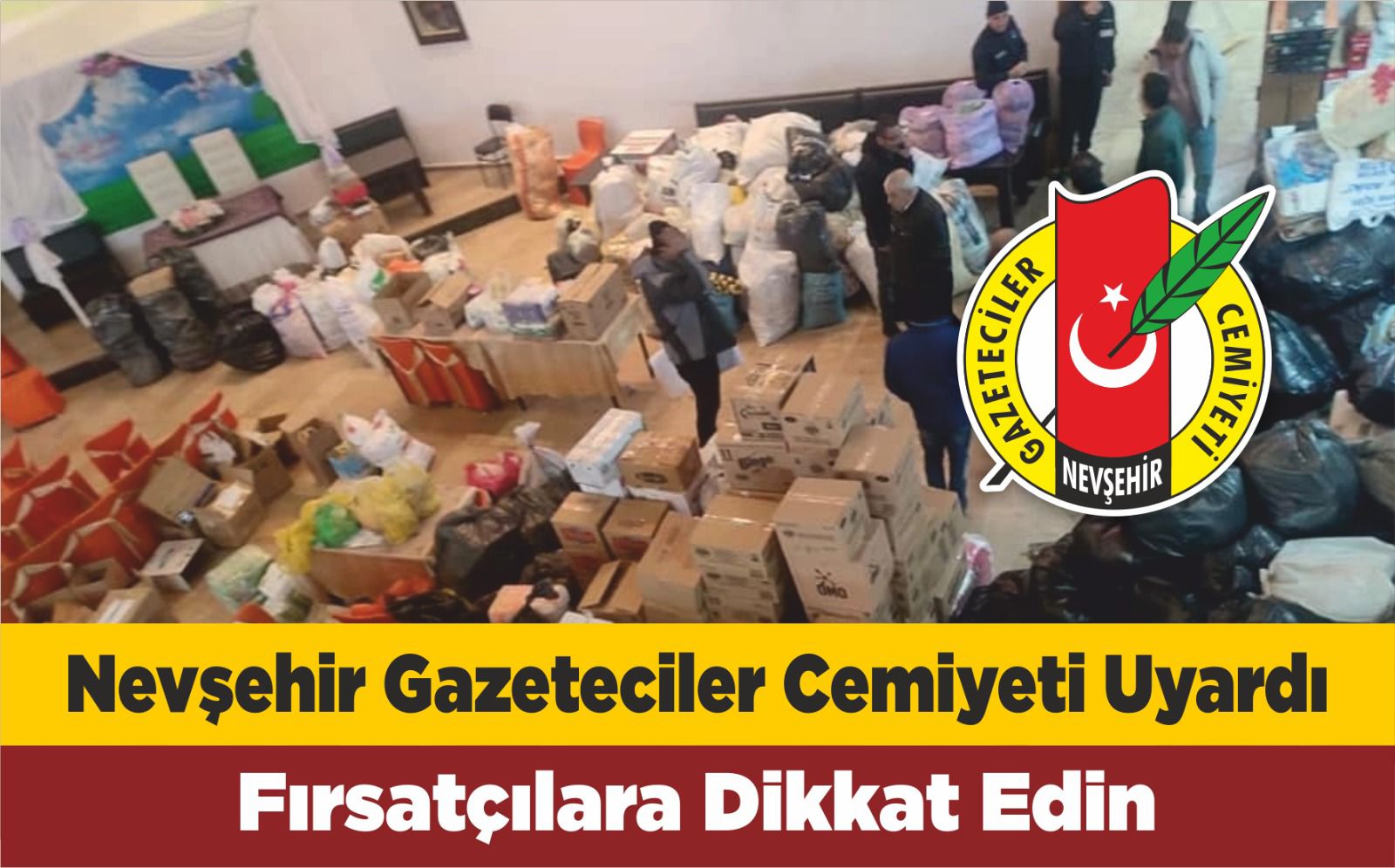 Nevşehir Gazeteciler Cemiyeti (NGC), fırsatçıların kendilerine çıkar sağlamak amacıyla yardımları kendilerine alması hususunda kamuoyunu bilgilendirme amacıyla açıklama yaptı.