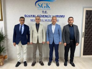 Nevşehir Ticaret Borsası (NTB) Yönetim Kurulu Başkanı İbrahim Salaş, Meclis Başkanı Mehmet Havalı ve Genel Sekreter Uslu Tombalak, SGK Nevşehir İl Müdürü Mehmet Baltacı’yı yeni makamında ziyaret ederek hayırlı olsun dileklerini iletti.