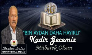 Kadir Gecesi’nin dua ve tövbelerin kabul edildiği müstesna bir gece olduğuna işaret eden Salaş, bu mübarek gecenin insanların kalplerine huzur ve mutluluk getirmesini temenni etti.