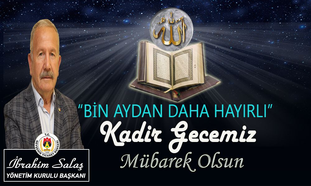 Nevşehir Ticaret Borsası (NTB) Yönetim Kurulu Başkanı İbrahim Salaş, Kadir Gecesi dolayısıyla bir mesaj yayımlayarak tüm İslam âleminin mübarek gecesini tebrik etti.