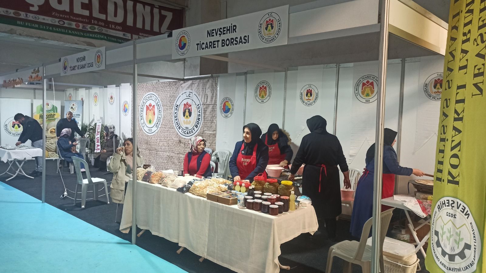 Ziyaretçilerden büyük ilgi gören Nevşehir Ticaret Borsası standında, coğrafi işaretli meşhur kabak çekirdeği, kuru üzüm, pekmez, köftür, Çat Ferfene Kadın Kooperatifi el yapımı erişte, mantı, gözleme, salamura yaprak, üzüm turşusu, salça, acılı gibi Nevşehir’in Yöresel ürünleri sergilendi.