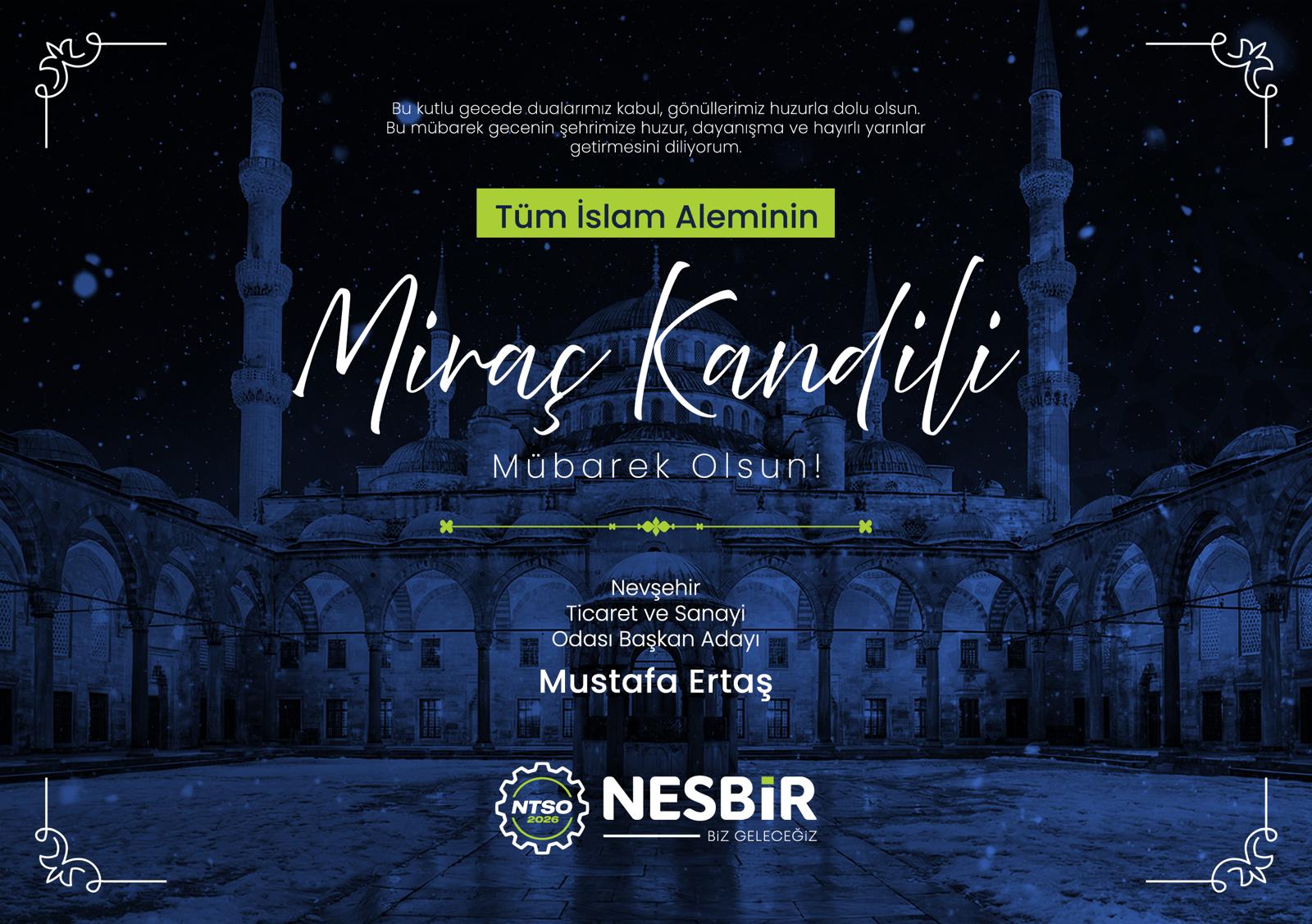 Nevşehir Ticaret ve Sanayi Odası Başkan Adayı Mustafa Ertaş, Miraç Kandili dolayısıyla bir mesaj yayımladı.
