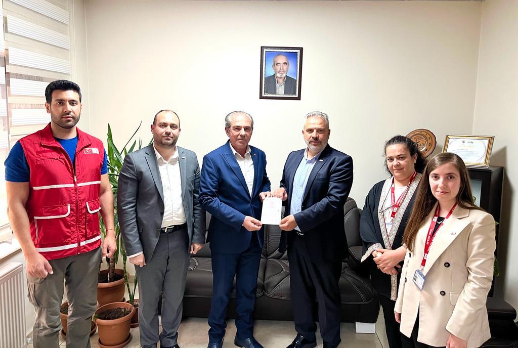 Türk Kızılayı Nevşehir İl Merkezi Başkanı Ercan Civelek ve beraberindeki heyet, “Kurban Bereketini Yıl Boyu Yaşatıyorsan Hilal Olsun Türkiye” sloganıyla sürdürülen Vekâletle Kurban Kesim Kampanyası kapsamında Necdet CİVELEK’i makamında ziyaret etti.