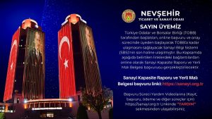 “01 Kasım 2024 tarihinden itibaren kapasite raporu düzenlenmesine ilişkin tüm müracaatlar (İlk kapasite, Kapasite Rapor Yenilmesi, Kapasite Rapor Değişikliği) ve takip işlemleri Türkiye Odalar ve Borsalar Birliği tarafından yönetilen “Sanayi Bilgi Sistemi” adlı web tabanlı uygulama aracılığıyla gerçekleştirilecektir. SBS ’ye http://sanayi.org.tr adresinden ulaşılabilmektedir. (sistem müracaatlar için 01.11.2024’de açılmıştır.)