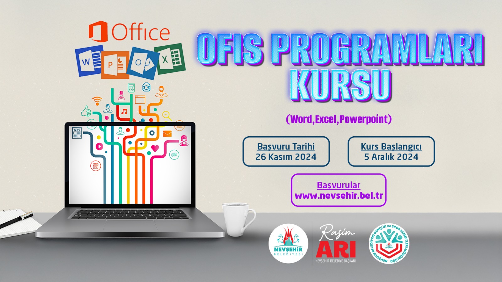 Nevşehir Belediyesi Gençlik ve Spor Hizmetleri Müdürlüğü bünyesinde “Ofis Programları Kullanım Kursu” açılıyor. 26 Kasım 2024 tarihi itibariyle www.nevsehir.bel.tr üzerinden başvurular alınmaya başlanıldı.