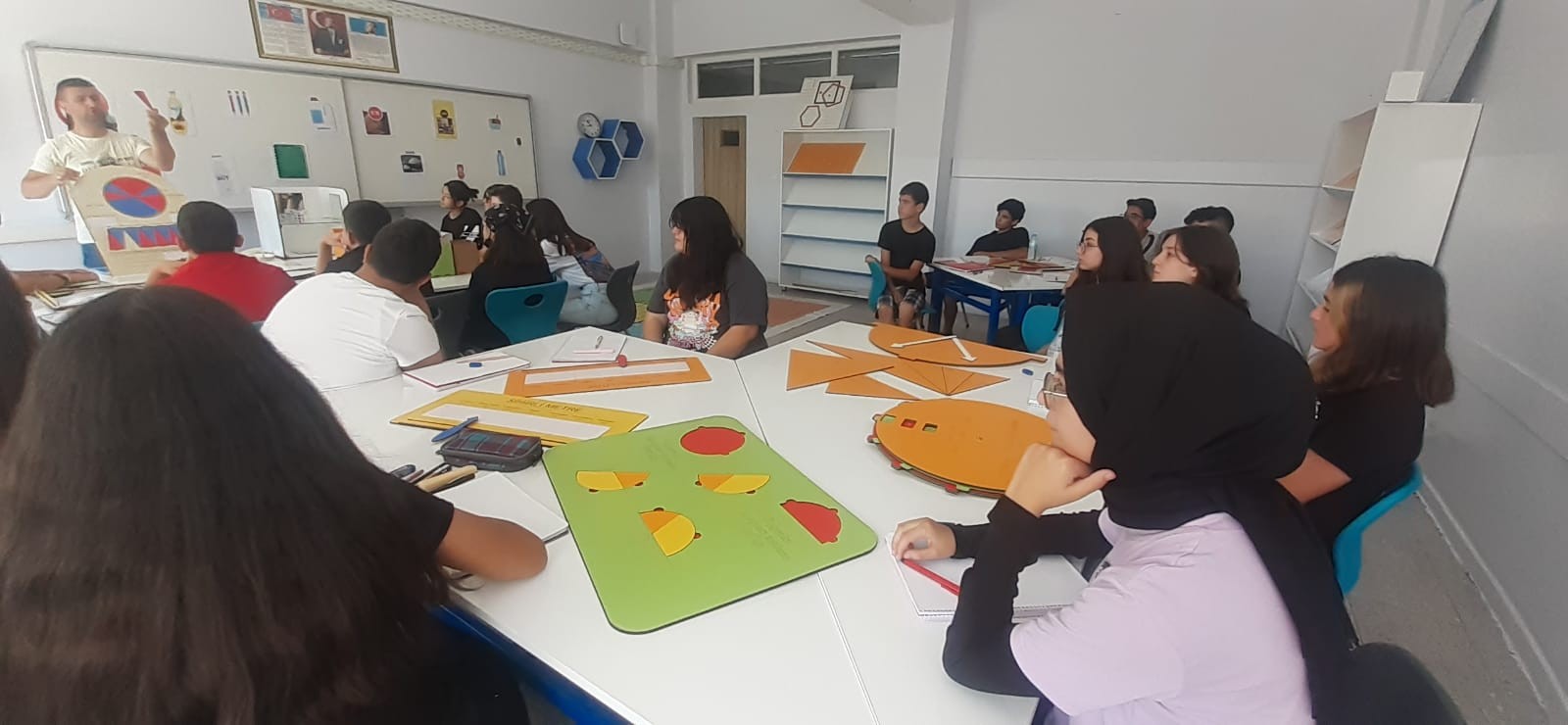 Nevşehir Damat İbrahim Paşa Ortaokulu’nda açılan matematik atölyesinde; doğal sayılar, tam sayılar, kesirler, ölçme, örüntüler, veri işleme, simetri, geometrik şekiller, açılar, alan ve hacim gibi matematiksel kavramlar günlük hayat problemleri üzerinden, oyunlaştırma yöntemiyle işleniyor.