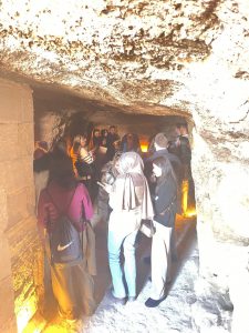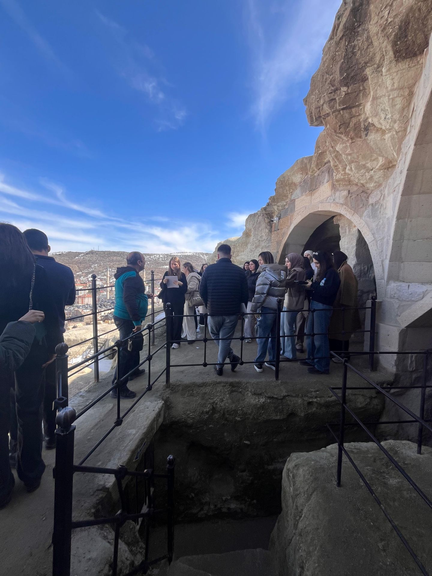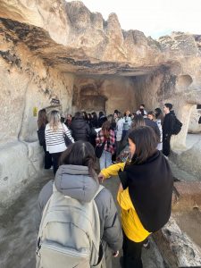 Gezinin saha çalışmasının ilk durağı Nevşehir Kalesi çevresindeki kaya oyma yapılardan oluşan Kayaşehir oldu. Öğrenciler, burada bölgedeki kaya oyma yapıların tarihi süreç içerisindeki dönüşümünü yerinde gözlemleme fırsatı yakaladı.