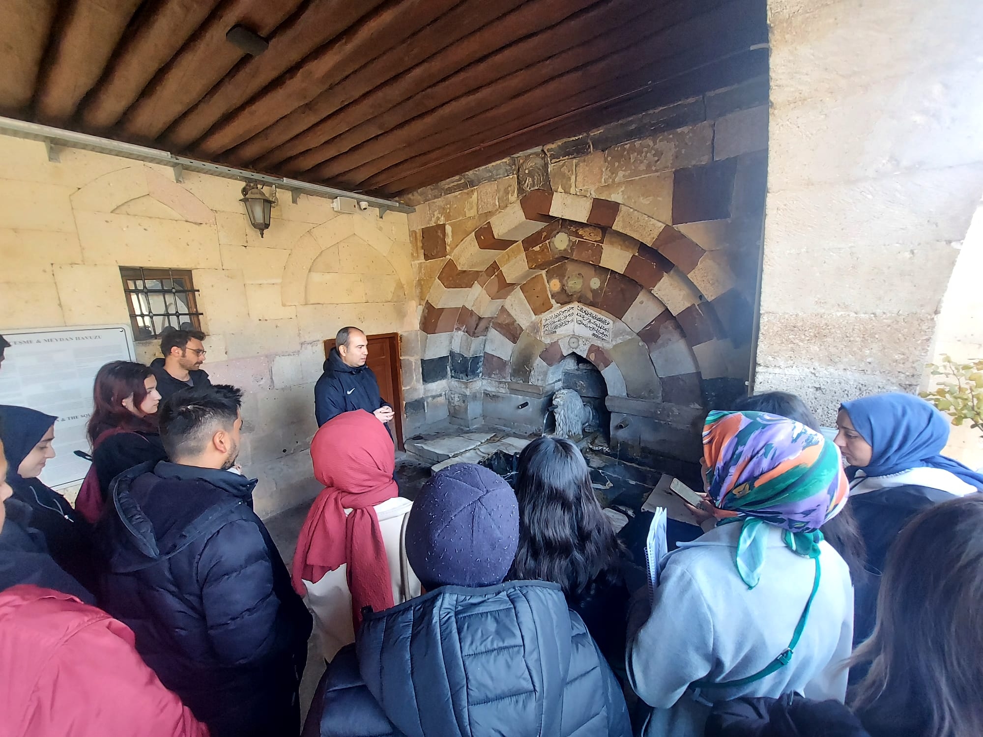 NEVÜ’lü öğretmen adayı öğrenciler, Sosyal Bilgiler Eğitimi öğretim elemanı Arş. Gör. Dr. M. Talha Özalp’in verdiği “Sanat ve Müze Eğitimi” dersini Hacı Bektaş-ı Veli Müzesi’nde uygulamalı olarak gerçekleştirdi.