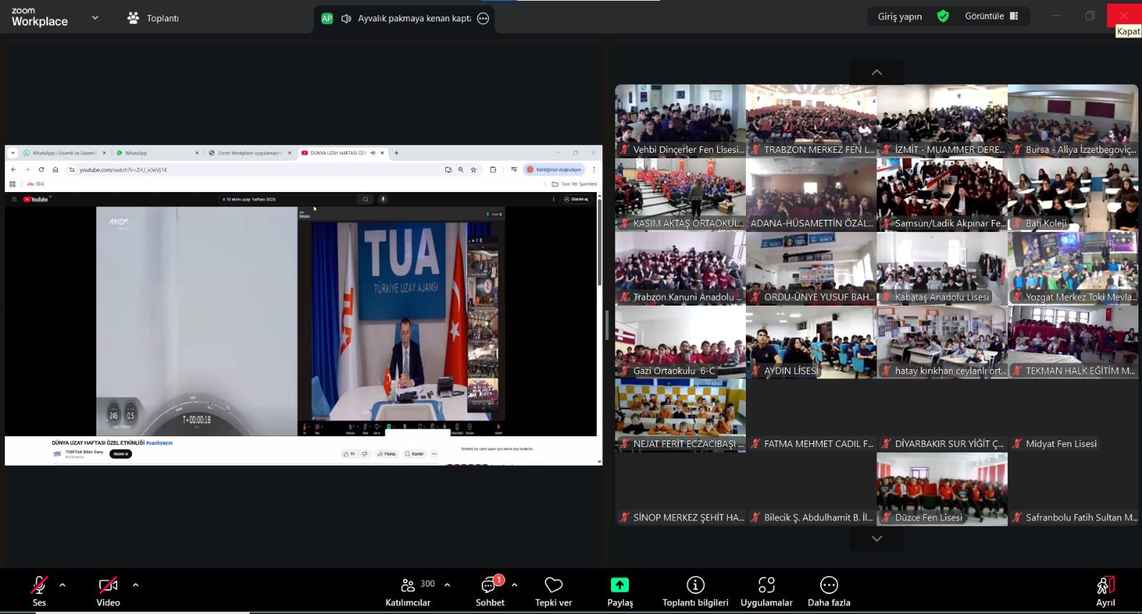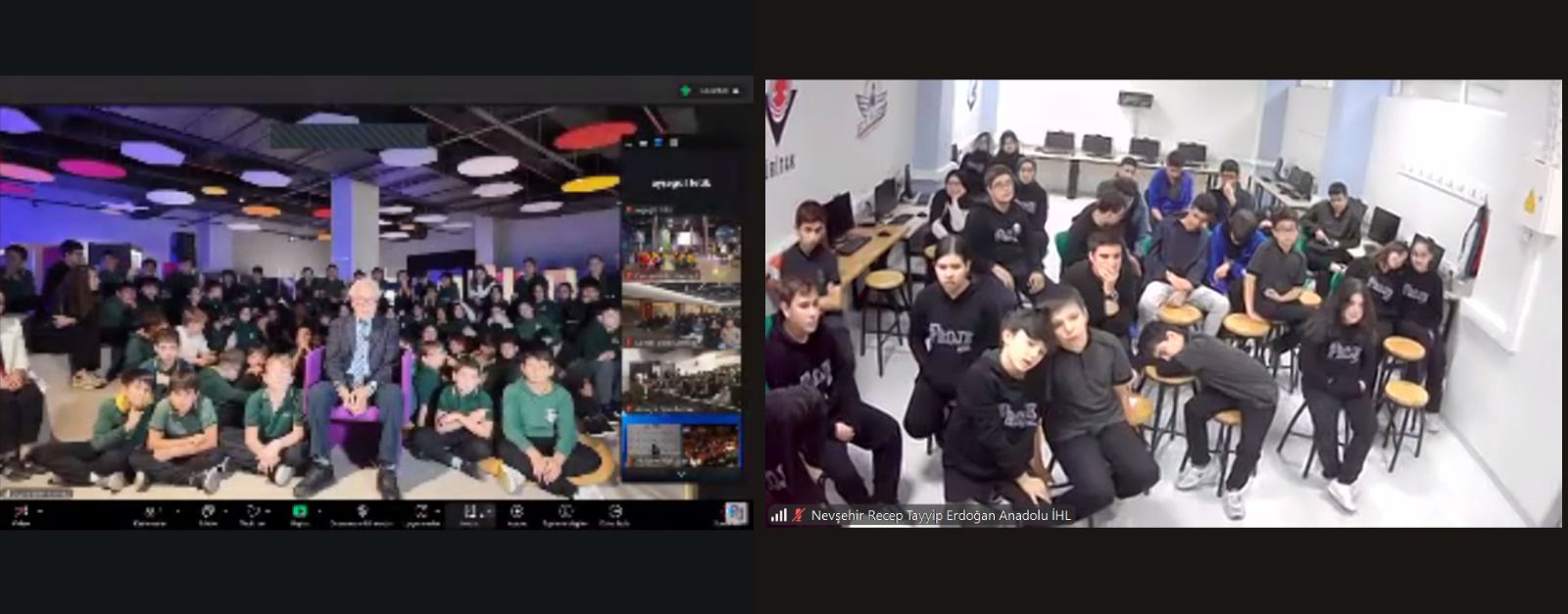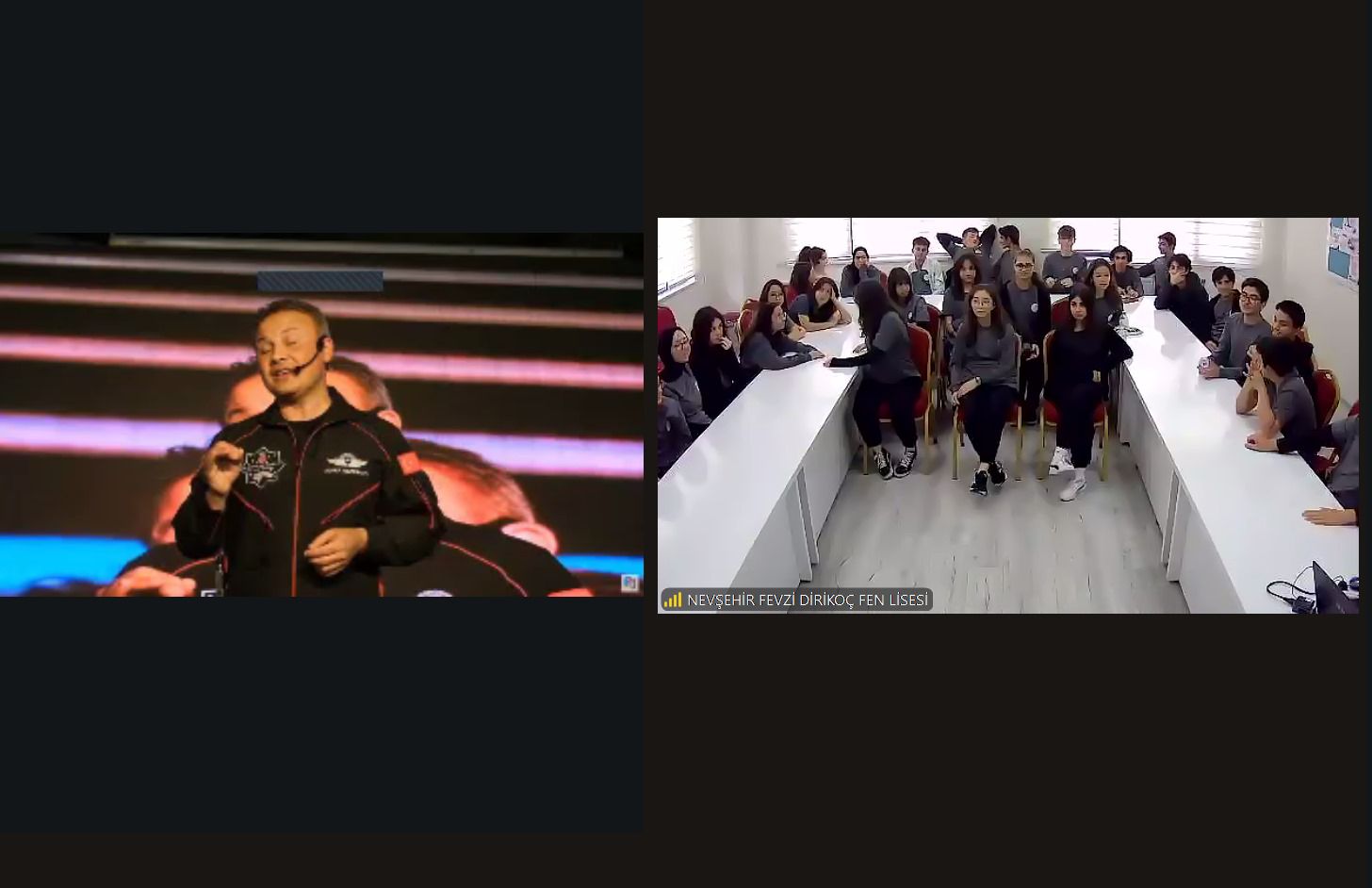 Her yıl 4–10 Ekim tarihleri arasında kutlanan ‘Dünya Uzay Haftası’ kapsamında düzenlenen etkinlikler, bu yıl da öğrencilerin yoğun ilgisiyle gerçekleşti. T.C. Sanayi ve Teknoloji Bakanlığı, Türkiye Uzay Ajansı (TUA) ve TÜBİTAK iş birliğiyle bilim merkezleri tarafından organize edilen çevrim içi etkinlikte, Türkiye’nin uzaya çıkan astronotları Alper Gezeravcı ve Tuva Cihangir Atasever, öğrencilerle bir araya geldi. Ülke genelinde 10 farklı bilim merkezinden ortak canlı yayınla yapılan etkinlikte; uzay teknolojileri, astronotluk eğitimi, uzay görevlerinin hazırlık süreçleri ve Türkiye’nin uzay araştırmalarındaki hedefleri üzerine keyifli ve öğretici bir söyleşi gerçekleştirildi. Nevşehir’den; Nevşehir Fevzi Dirikoç Fen Lisesi, Ürgüp Tesan Fen Lisesi, Nevşehir Recep Tayyip Erdoğan İmam Hatip Lisesi, Nevşehir Şehit Semih Turgut Ortaokulu ve Ürgüp Ayhan Ertürk İlkokulundan öğrenci ve öğretmenler katıldı. Öğrenciler Türk astronotlara; uzay yolculukları, eğitim süreçleri ve görev sırasında yaşadıkları deneyimlerle ilgili merak ettikleri soruları yönelttiler. Etkinlik boyunca öğrenciler, Alper Gezeravcı ve Tuva Cihangir Atasever’in kişisel deneyimlerinden ilham alarak Türkiye’nin uzay çalışmalarına dair farkındalık kazandılar. Astronotlar, özellikle gençlerin bilim ve teknolojiye yönelmelerinin ülkenin geleceği açısından büyük önem taşıdığını vurguladı.