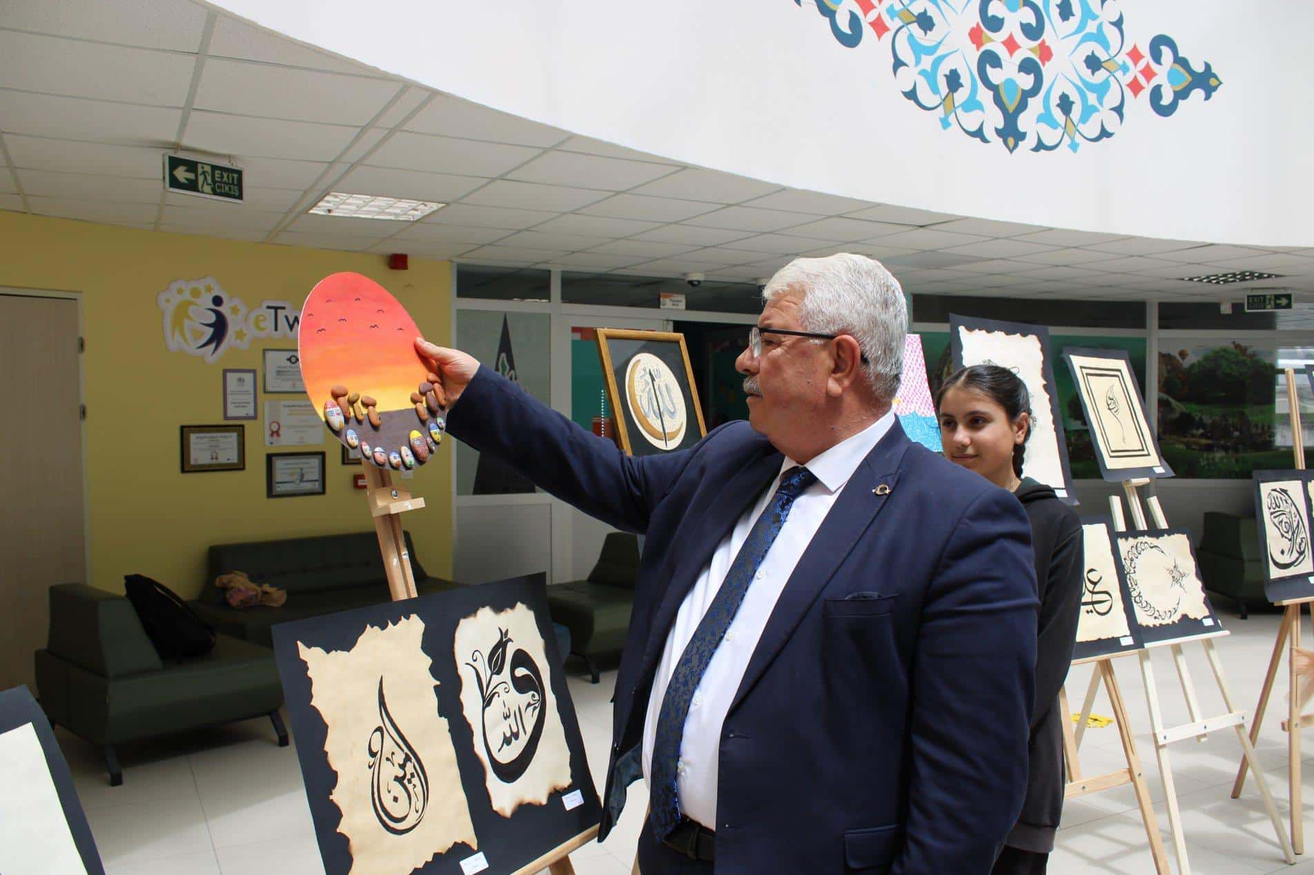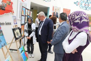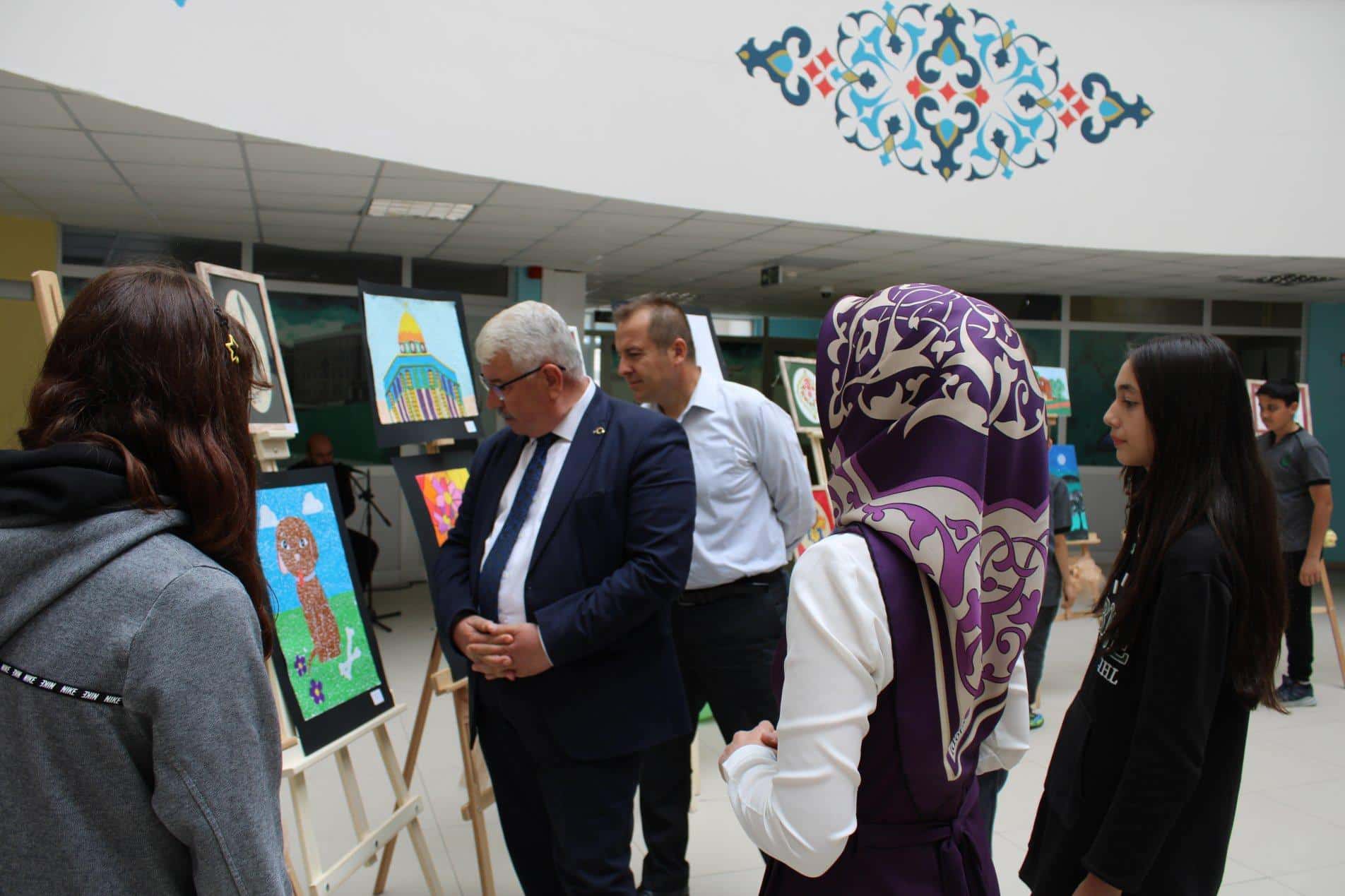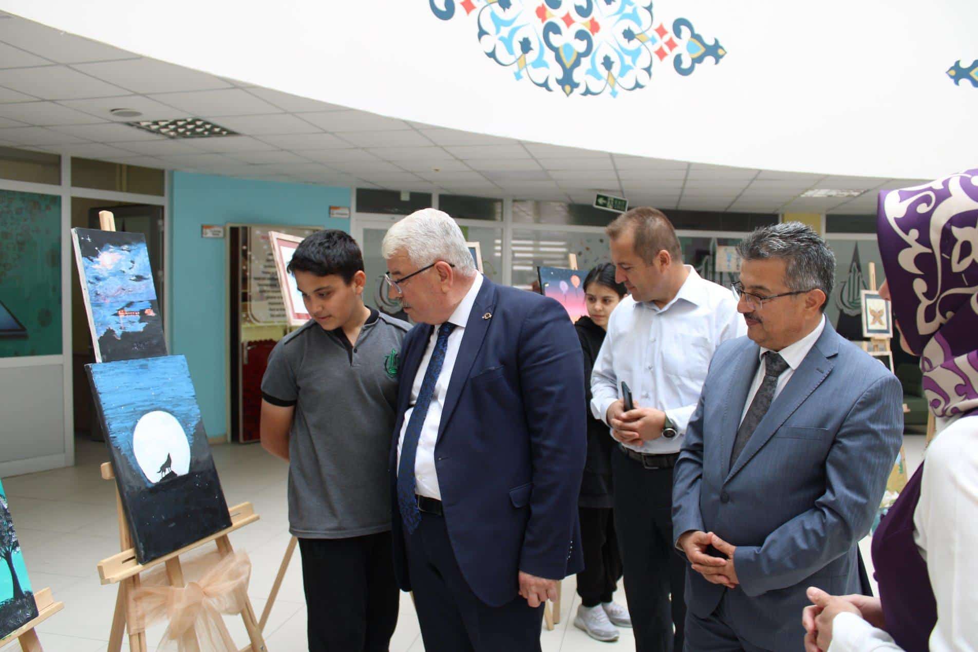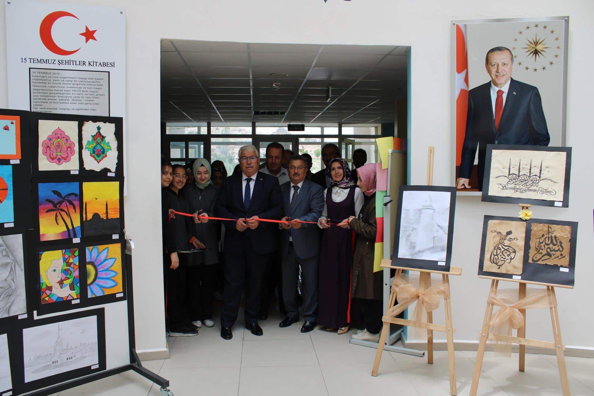 İl Milli Eğitim Müdürü Yusuf YAZICI; İl MEM Müdür Yardımcısı Murat SALTIK, idareci, öğretmen ve öğrencilerin katılımıyla Recep Tayyip Erdoğan Proje İmam Hatip Lisesi öğrencileri tarafından hazırlanan resim sergisinin açılışını gerçekleştirdi. İl Müdürü, öğrencilerle sohbet ederek eserleri hakkında bilgi aldı. Sayın YAZICI, öğrencilerin en az bir sanatsal faaliyetle ilgilenmesinin hayatlarına katkı sağlayacağını ve geleceğe bakışlarını etkileyeceğini belirterek bu güzel serginin düzenlenmesinde emek veren ve katkı sağlayan herkese teşekkür etti.