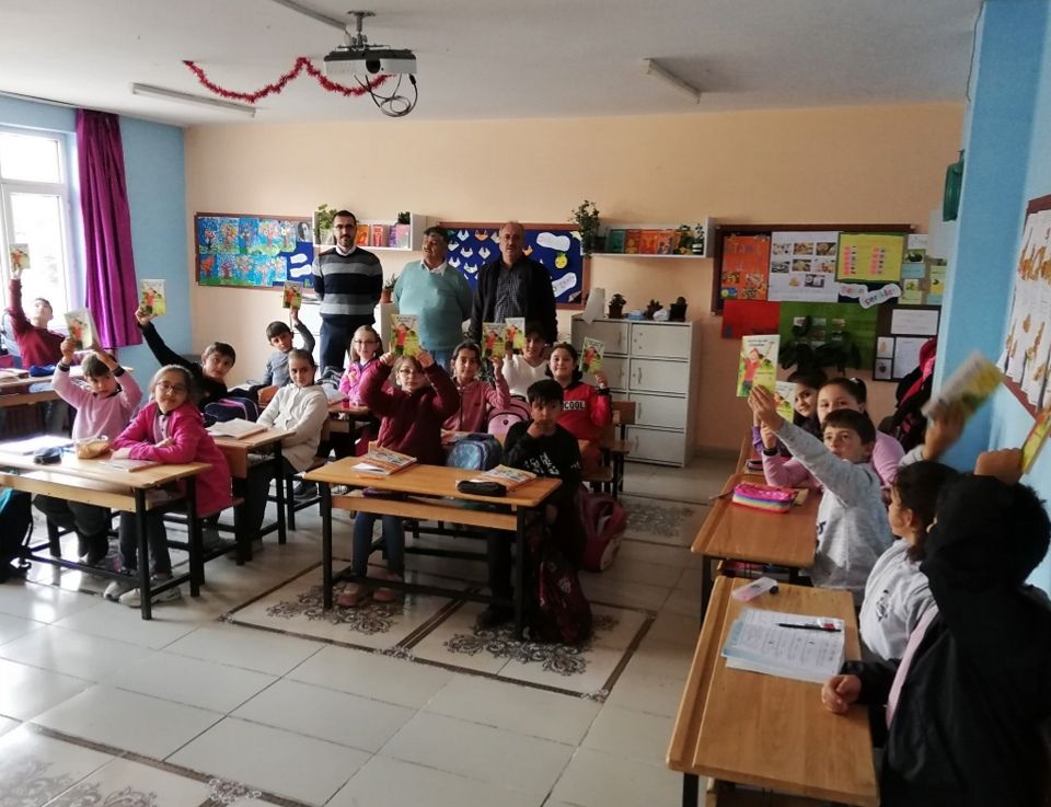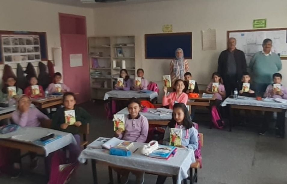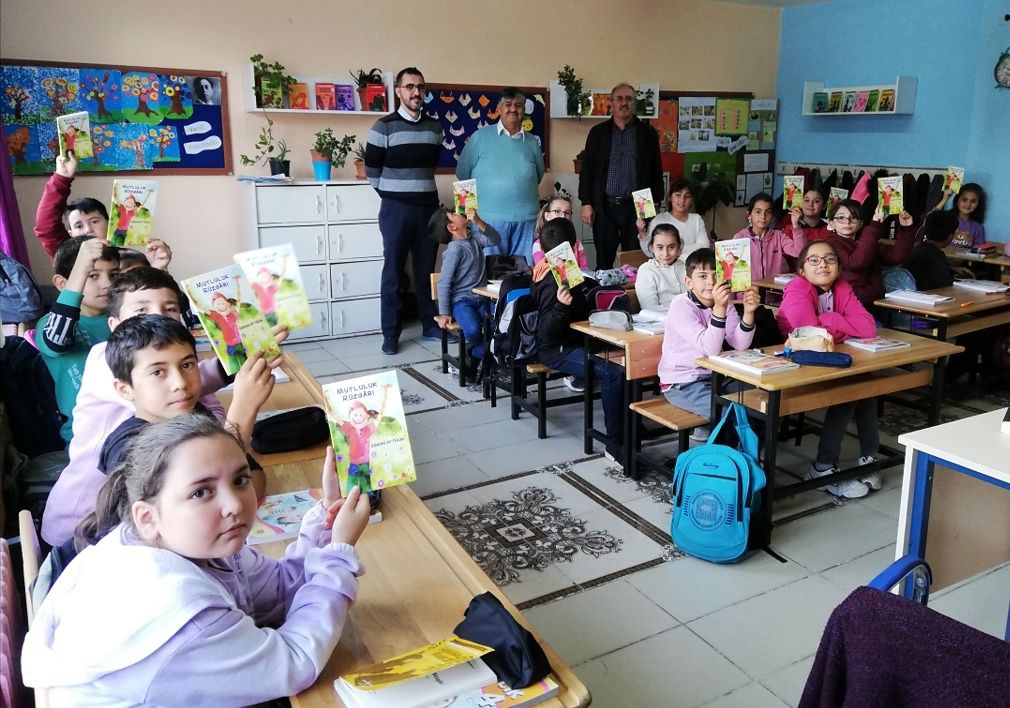 Yazar Osman Aytekin’in Mutluluk Rüzgarı isimli öykü kitabını Cumhuriyet İlkokulunda öğrencilere hediye etti. Esnaf Hakan Demir, “öğrencilerimize en güzel hediye kitap olarak düşündük. Öğrencilerimizin başarılı olmalarını istiyoruz. ” Dedi.