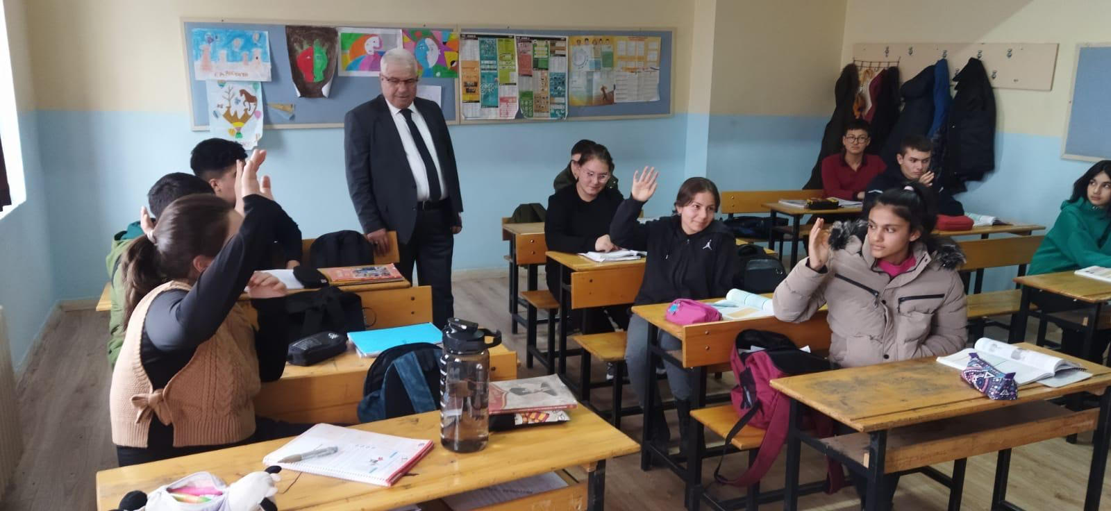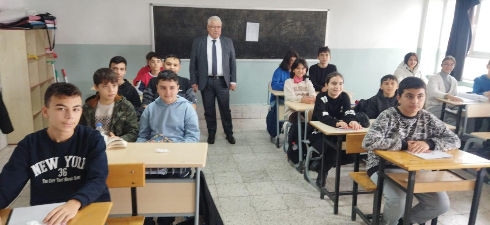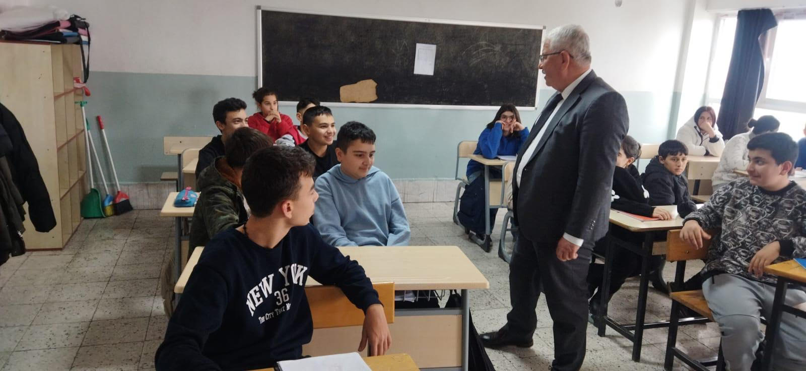8.Sınıf öğrencilerini ders esnasında ziyaret eden Yazıcı, öğrenciler ile ders çalışma yöntemleri ve sınav teknikleri üzerine sohbet etti.