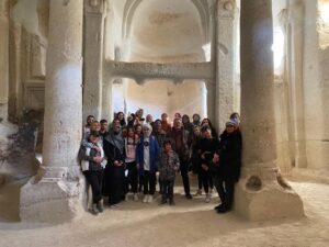 Vadi yürüyüşünde öğrencilere Kapadokya Bölgesi’nin coğrafi oluşumu, değişik medeniyetlere ev sahipliği yapan tarihi ve doğal zenginlikleri ile birlikte kaya oyma kiliseleri hakkında bilgi verildi.