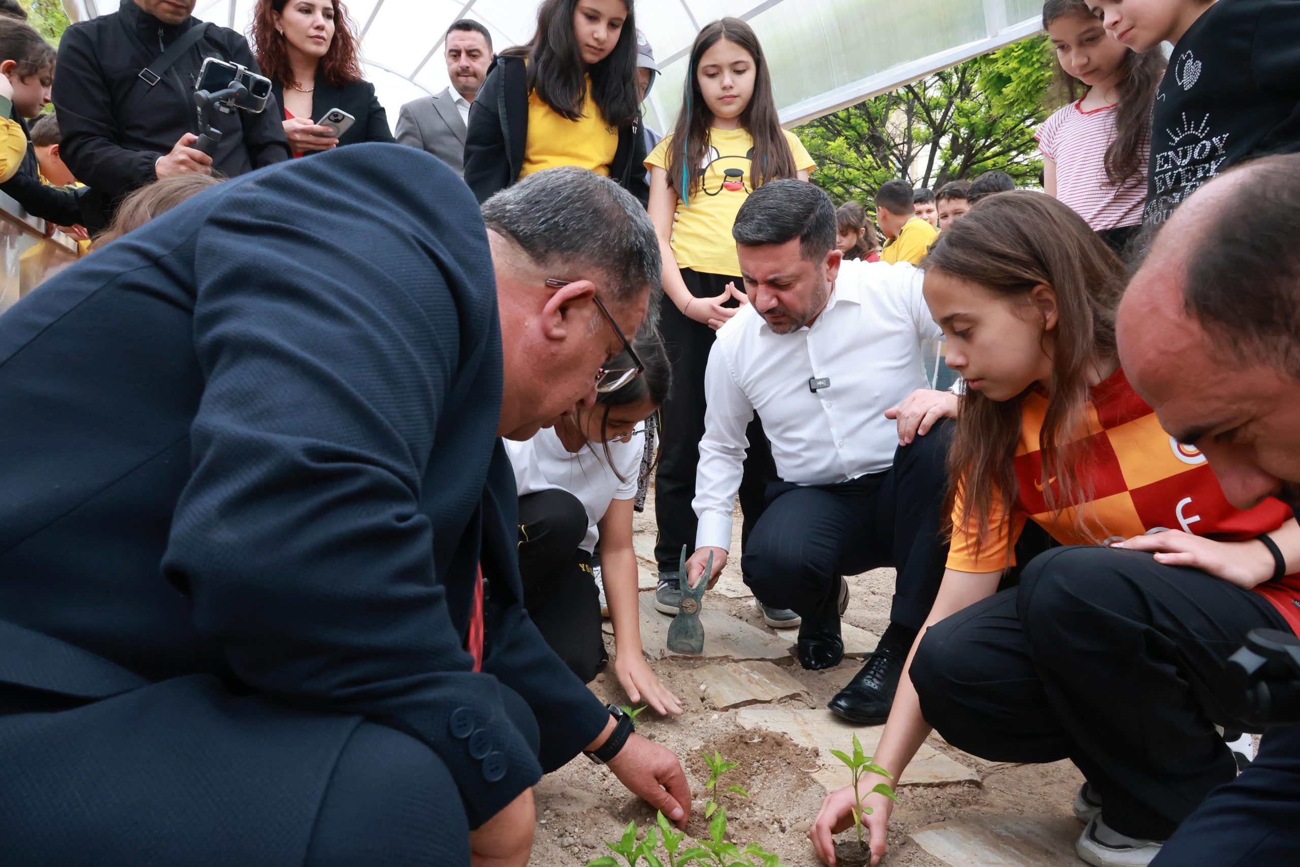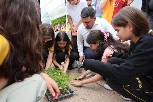 Ortaokul öğrencileri Nevşehir Belediye Başkanı Rasim Arı’ya butik sera kurulumu ile ilgili fide dikimini öğrendiklerini belirterek teşekkür edip çalışmalarında başarılar diledi.