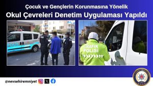 Okul Çevreleri Denetim Uygulamaları sürüyor. Nevşehir İl geneli, tüm ilkokul, ortaokul, lise, üniversite ve öğrenci yurtlarının yakın çevrelerinde okulla ilişkisi bulunmayan şüpheli şahıslara yönelik ve bu yerlerin yakınındaki park ve bahçeler, metruk binalar, alkol ve tütün mamulleri satılan yerler, iddia ve ganyan bayileri, kahvehaneler, internet ve elektronik oyun salonları, vb. yerlerde, çocuk ve gençlerin korunmasına yönelik yapılan uygulamada; 106 okul çevresi, 483 şahıs, 19 işyeri, 57 park bahçe, 17 metruk bina, 138 araç ve 64 okul servis aracı kontrol edilmiş, 3 şahsa ve 1 araç sürücüsüne cezai işlem uygulandı.