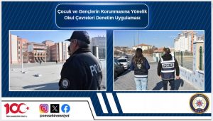 İlimiz geneli, tüm ilkokul, ortaokul, lise, üniversite ve öğrenci yurtlarının yakın çevrelerinde okulla ilişkisi bulunmayan şüpheli şahıslara yönelik ve bu yerlerin yakınındaki park ve bahçeler, metruk binalar, alkol ve tütün mamulleri satılan yerler, iddia ve ganyan bayileri, kahvehaneler, internet ve elektronik oyun salonları, vb. yerlerde, çocuk ve gençlerin korunmasına yönelik yapılan uygulamada; 105 okul çevresi, 545 şahıs, 6 metruk bina, 36 işyeri, 40 park bahçe, 107 araç ve 56 okul servis aracı kontrol edilmiş, 6 araca cezai işlem uygulanmıştır.
