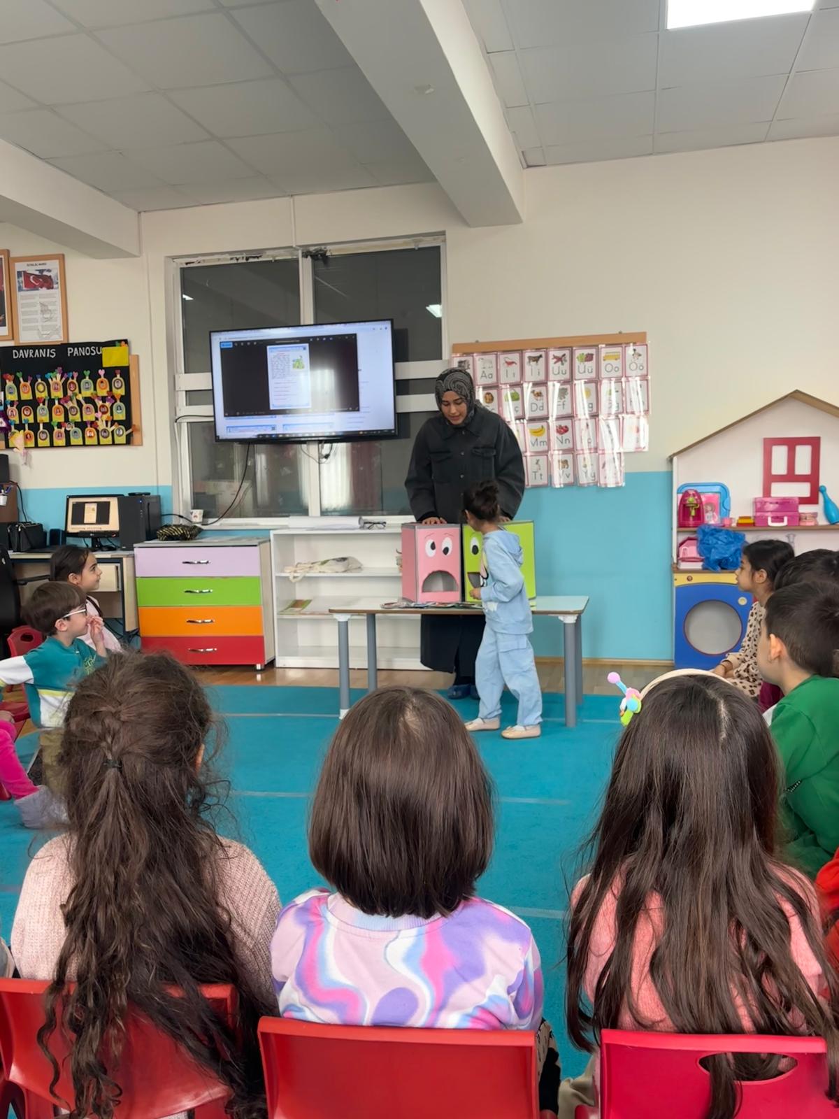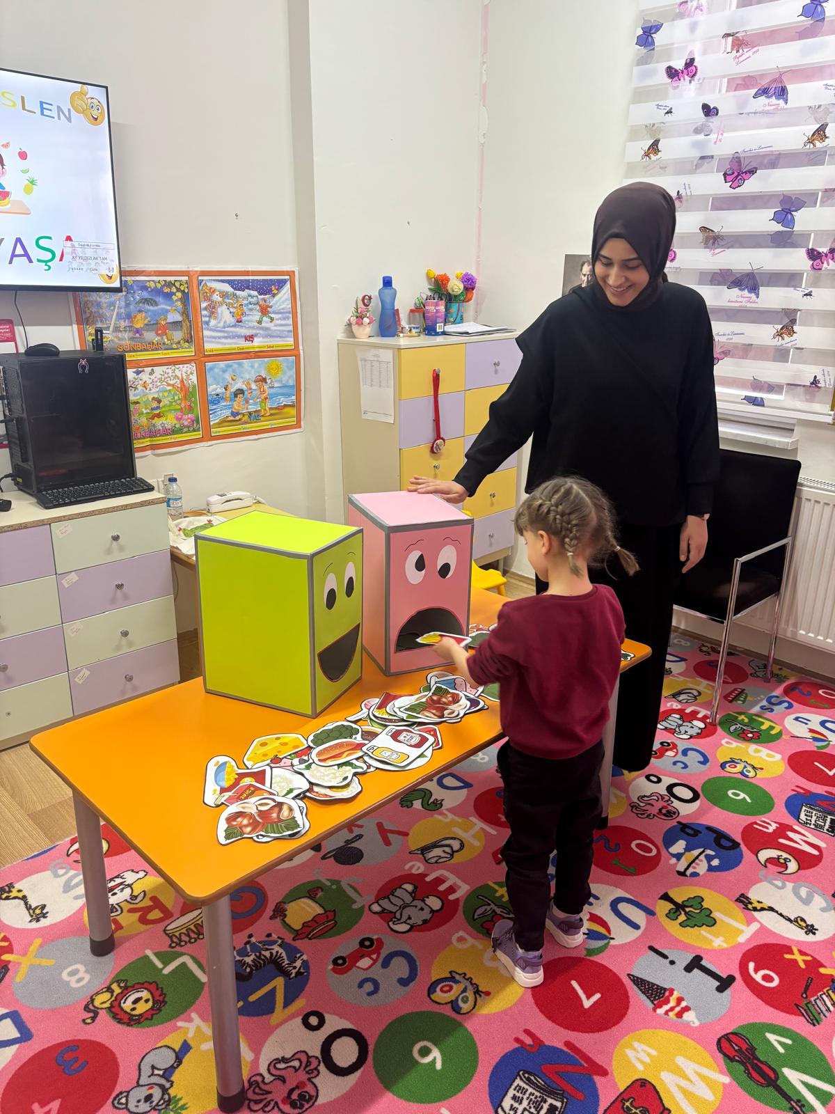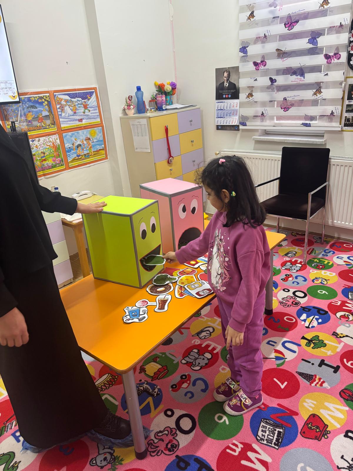 Okul öncesi öğrencilere beslenme ile ilgili bilgiler verdikten sonra sağlıklı beslenme alışkanlığı kazandırmak amacıyla, ‘Sağlıklı mı Sağlıksız mı’ isimli oyun oynatılarak besinlerin faydaları ve zararları hakkında bilgi paylaşımında bulunuldu.