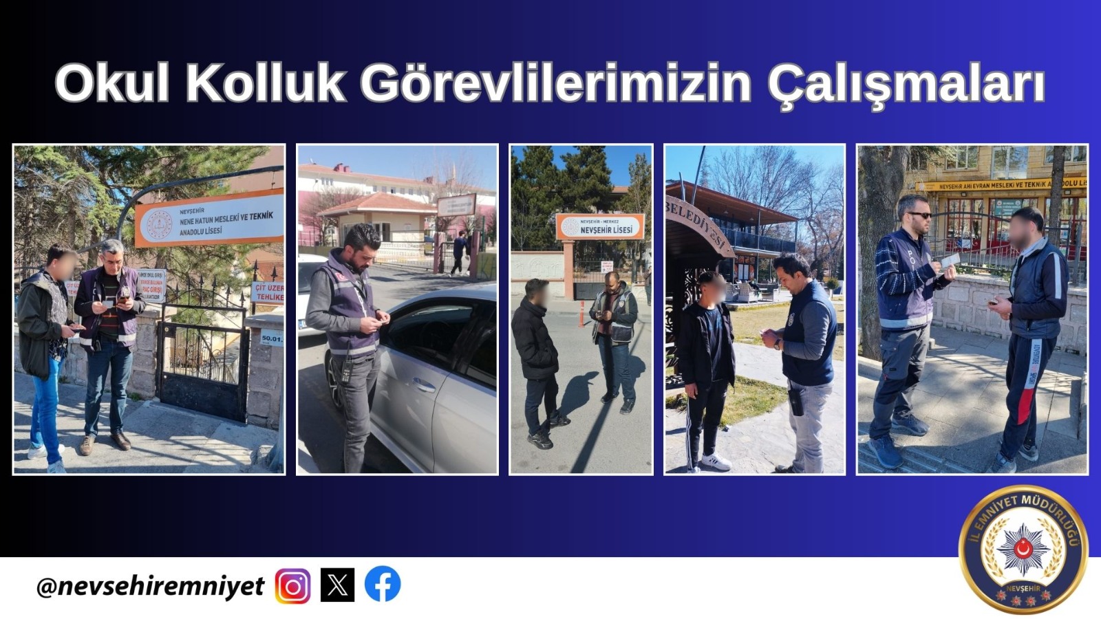 Nevşehir Emniyet Müdürlüğü ekipleri yaptığı çalışmalarla okulların güvenliğini sağlıyor. İl merkezinde sabit okul kolluk görevlisi bulunan 7 okul ve çevresinde okul kolluk görevlilerince şubat ayı boyunca yapılan çalışmalarda okul çevresinde, okulla ilişkisi olmayan 181 şahıs kontrol edilirken 13 şahsa ve 34 araç sürücüsüne cezai işlem uygulandı.