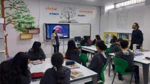 Etkinlik kapsamında TDE öğretmeni Osman Okan Gül koordinesinde 11-E sınıfından öğrenci Bilge Özsoy 9- B sınıfı öğrencilerine yazar-eser tanıtımı yaptı.