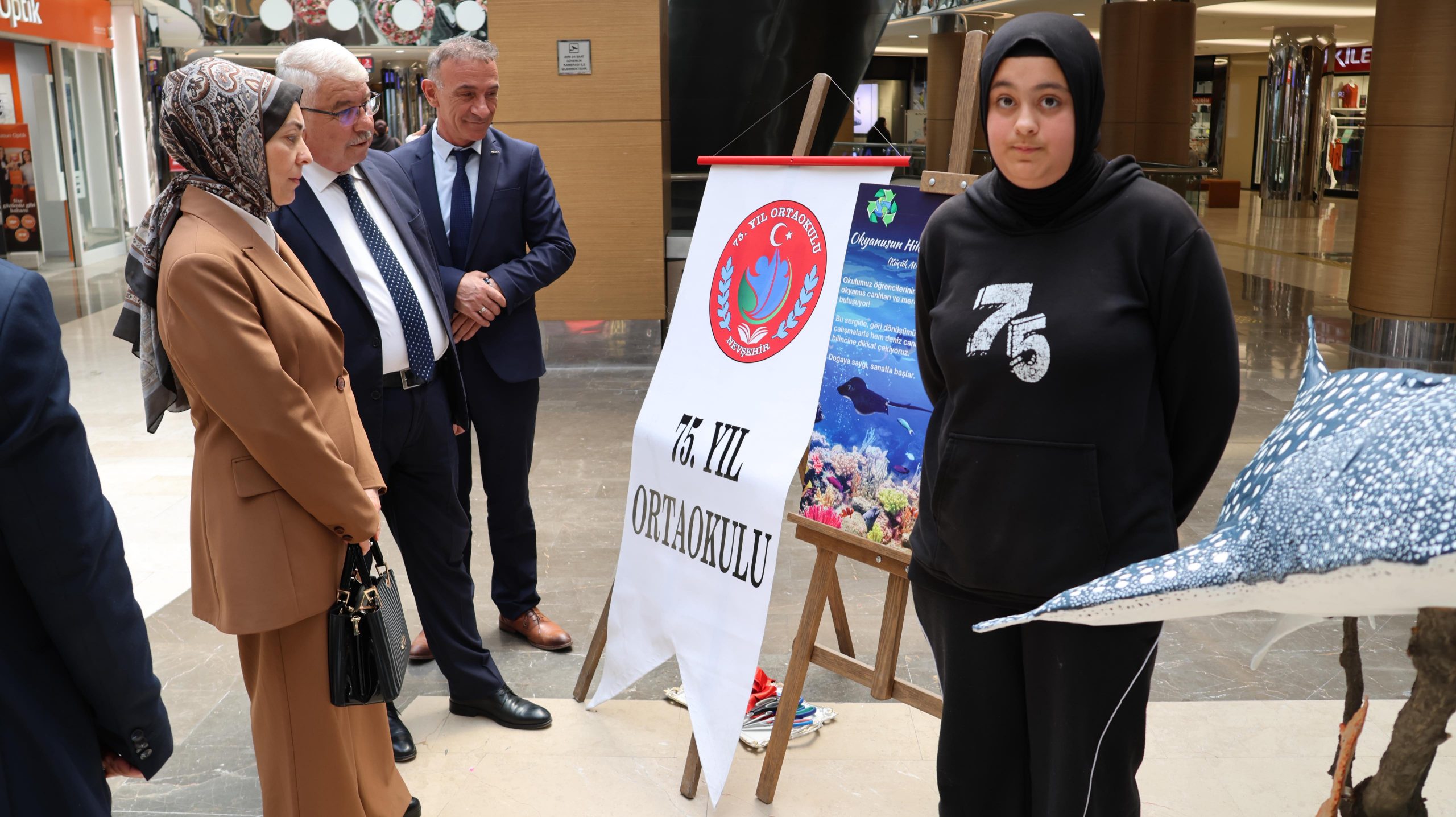 Deniz canlılarının yok oluşa sürüklenen sessiz çığlığını, sanatın diliyle duyurmak için 75. Yıl Ortaokulu yönetici, öğretmen ve öğrencileri; “Okyanusun Hikayesini Kâğıtla Yazıyoruz” sergisi düzenlediler.
