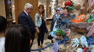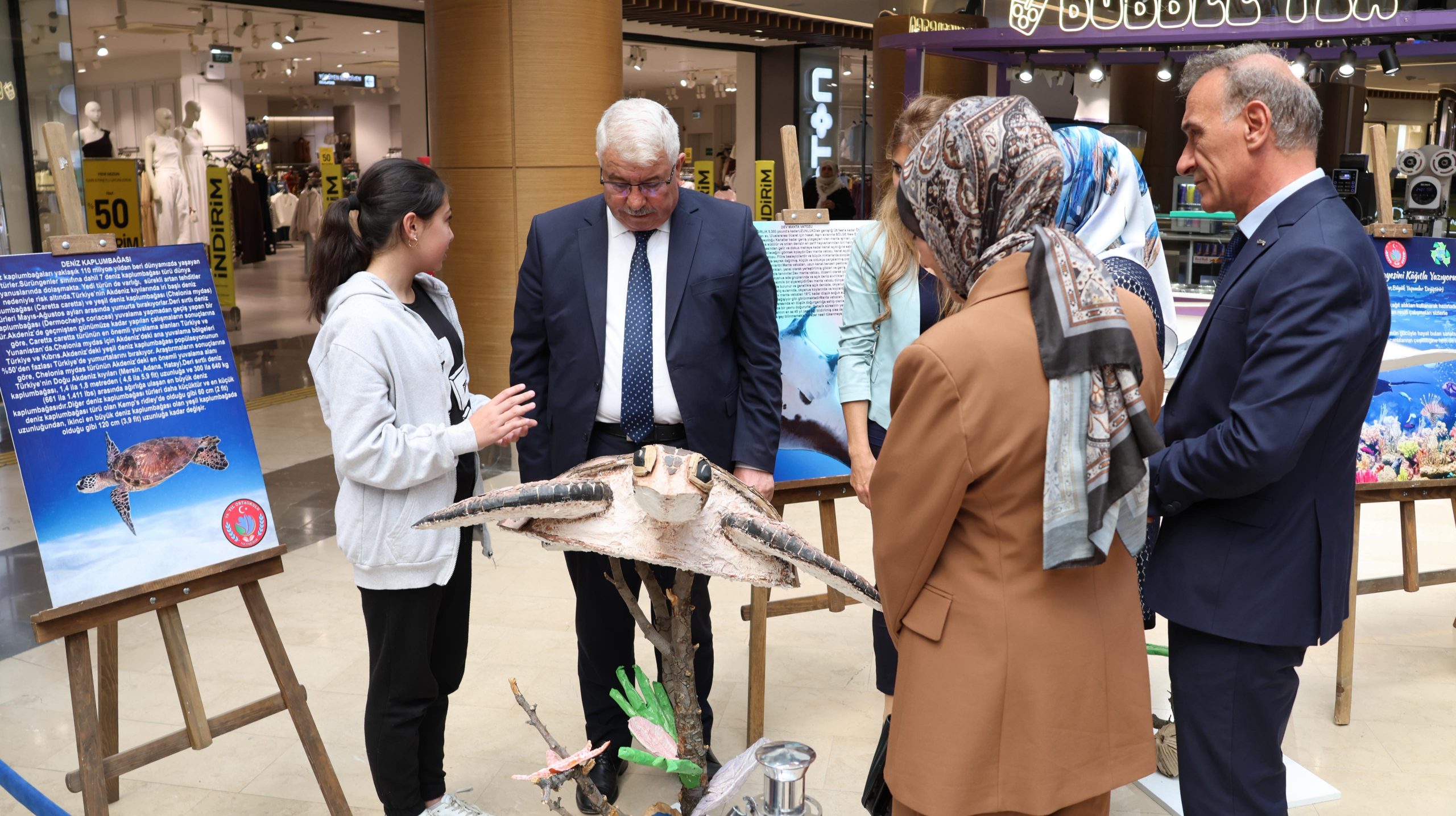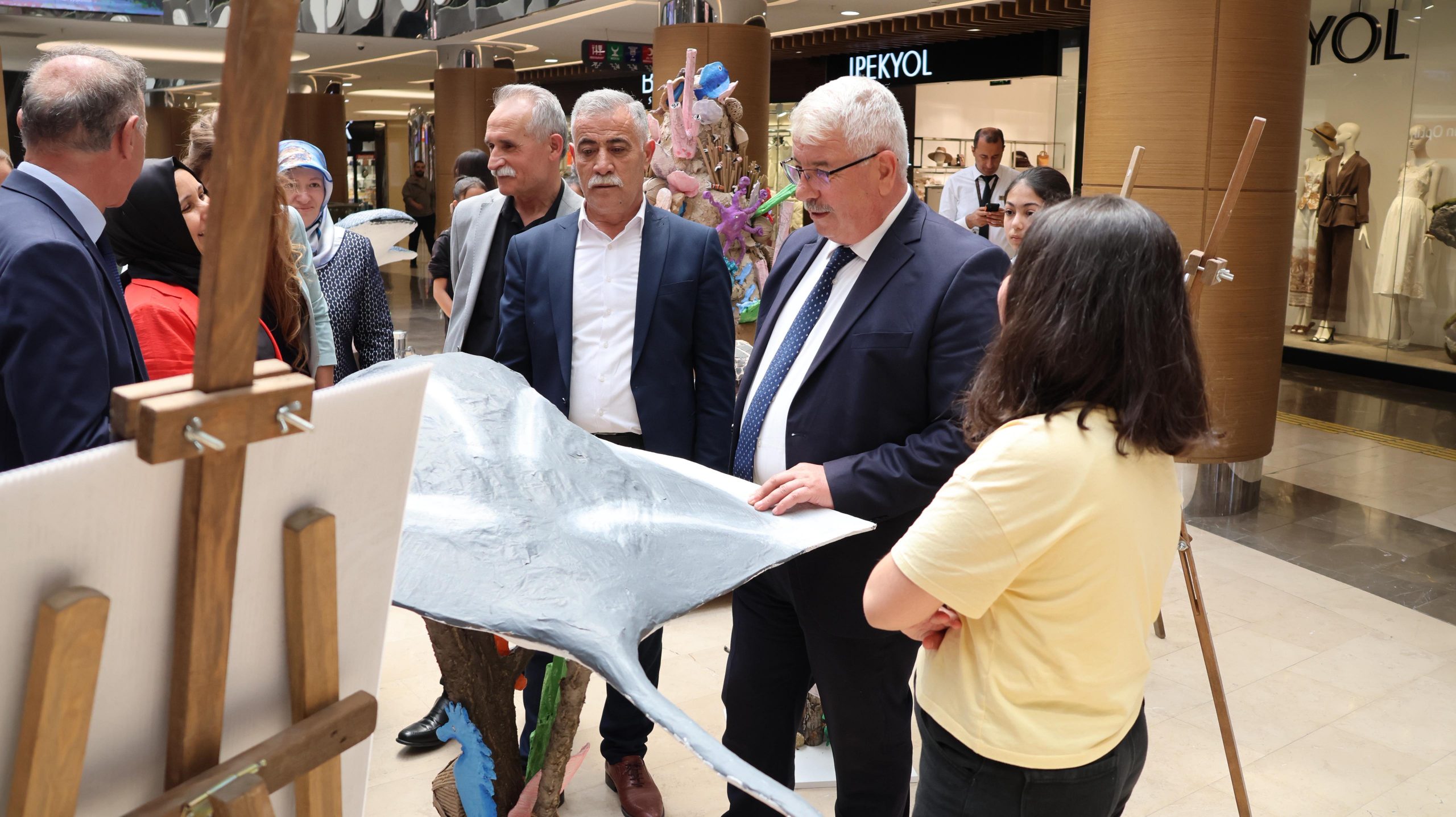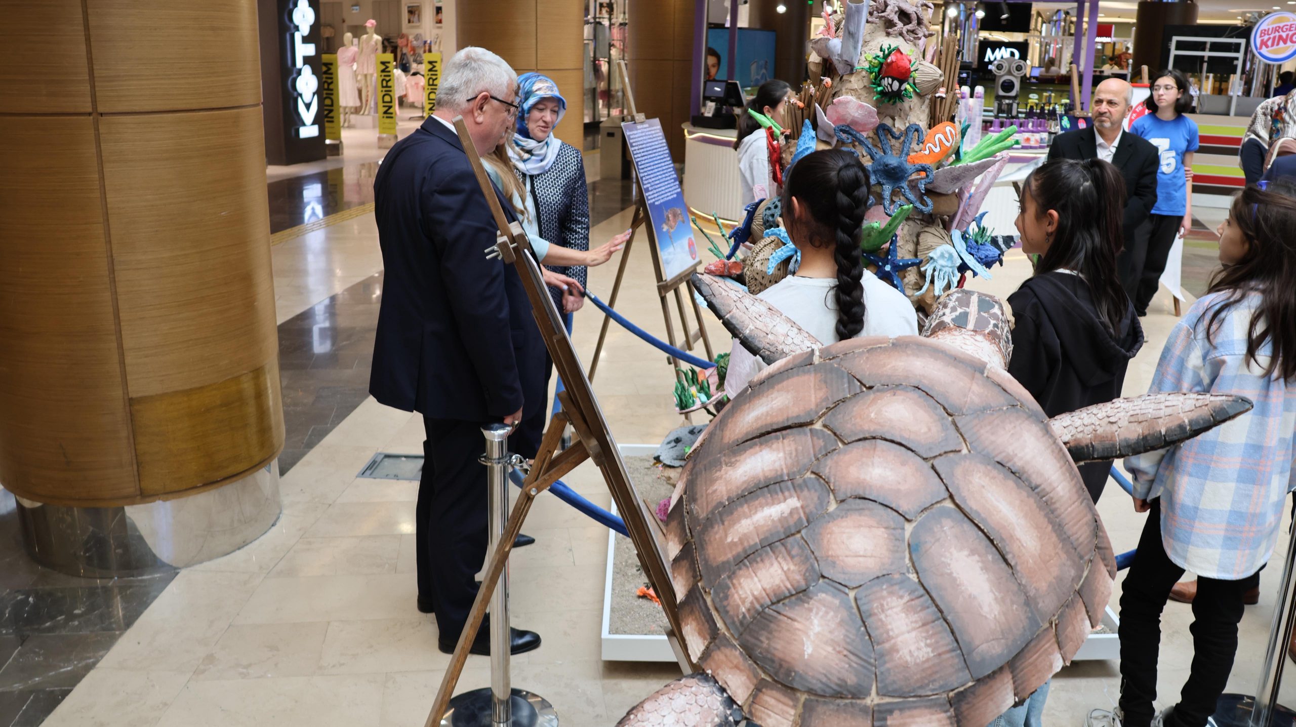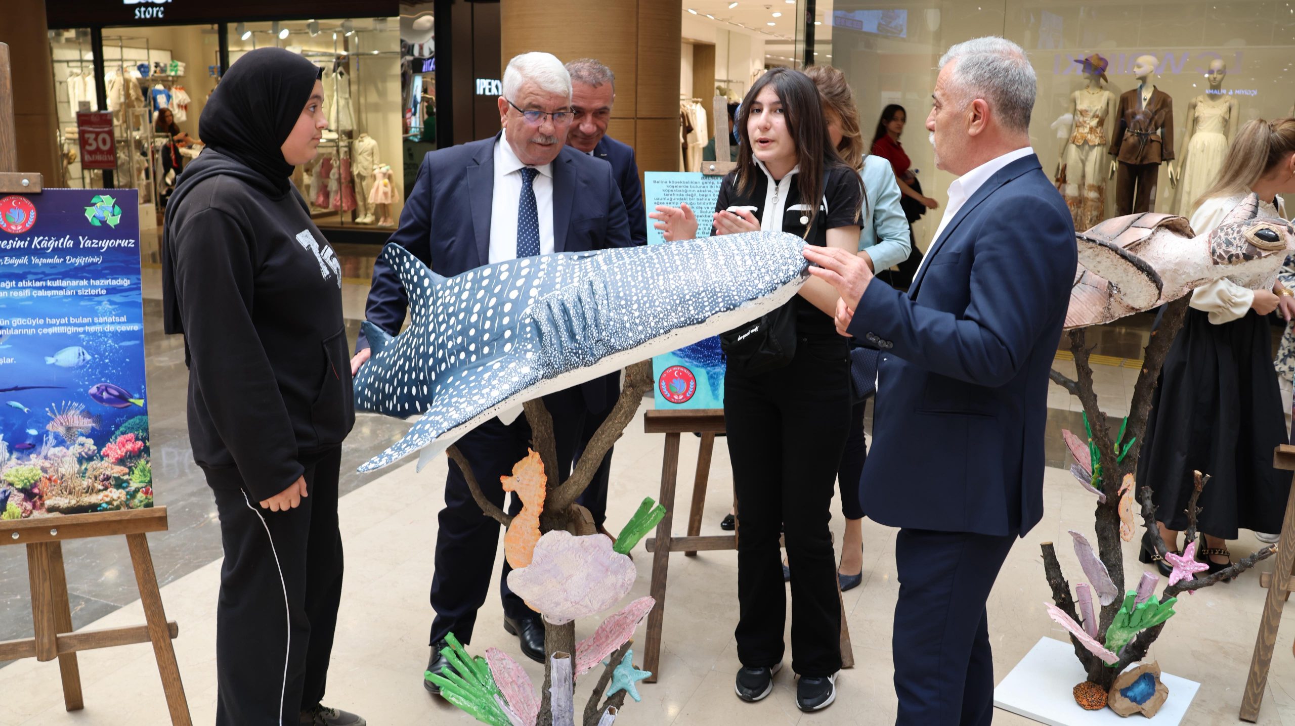 Kâğıt atıkların sanata ve farkındalığa dönüştüğü özel sergide mercanlar, balıklar, kaplumbağalar ve denizyıldızları geri dönüştürülmüş kâğıtlarla hayat buldu.