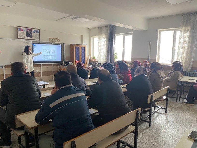 Velilere: Sınav Kaygısıyla Baş Etme Yolları, Okul Başarısında Anne Baba Tutumları konularında bilgi verildi.