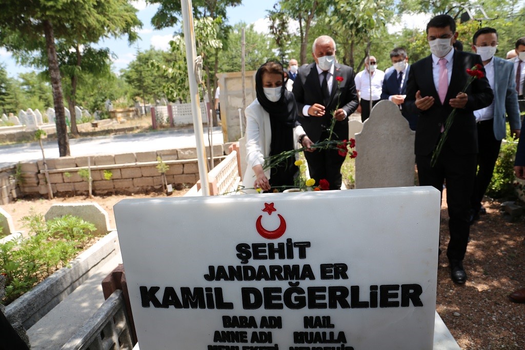 Niğde Valisi Yılmaz Şimşek, Nide Belediye Başkanı Emrah Özdemir, İl Jandarma Komutanı Garip Gümüş, Emniyet Müdürü Ömer Faruk Karataş, Nevşehir Belediye Başkanı Rasim Arı ve protokol üyeleri burada 15 Temmuz şehidi Ömer Halisdemir’i mezarına karanfil bırakarak dua etti.