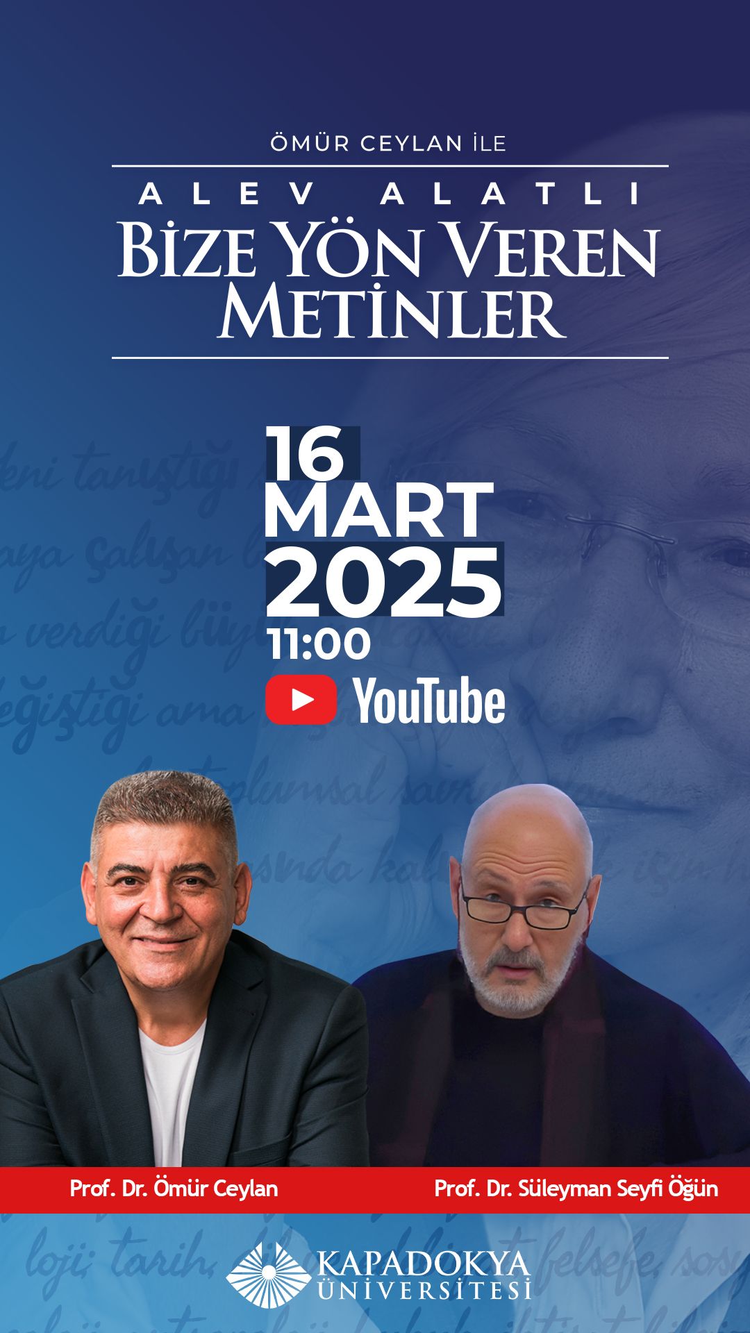 Alev Alatlı’nın Türk düşünce anlayışlarına değindiği ve başarıyla liderlik ettiği “Bize Yön Veren Metinler” eserlerinin ele alındığı program başladı. Ünlü siyaset bilimci Prof. Dr. Süleyman Seyfi Öğün, Kapadokya Üniversitesi (KÜN) tarafından düzenlenen ve Prof. Dr. Ömür Ceylan’ın sunuculuğunu üstlendiği programın ilk konuğu oldu.