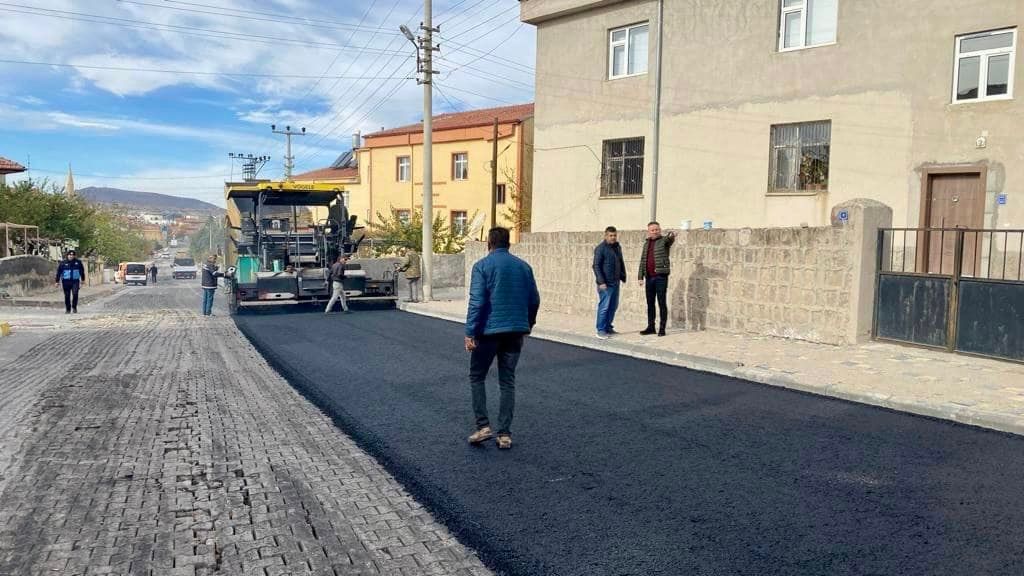 Ortahisar kasabasında doğalgaz alt yapı çalışmaları tamamlanan yollarda sıcak asfalt çalışmaları yürütülüyor.