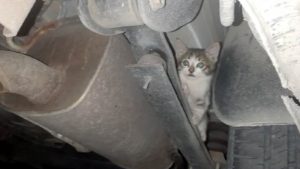 Edinilen bilgiye göre, 2000 Evler Mahallesi Üniversite kavşağında park halinde bulunan Bilal Yolbaşı’na ait otomobilin çamurluğuna kedi sıkıştı.