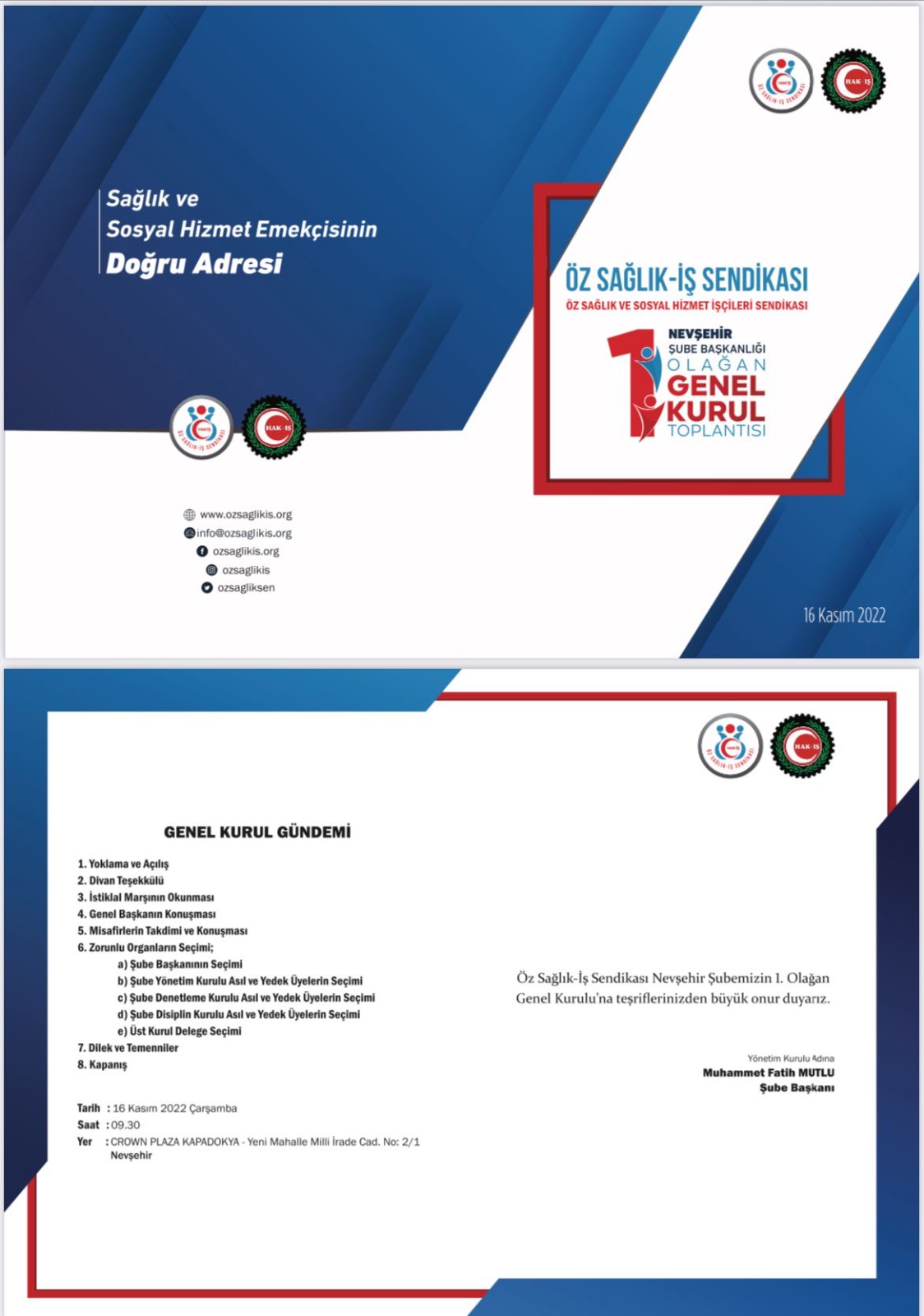 Hak-İş Konfederasyonuna bağlı Öz Sağlık-İş Sendikasının olağan genel kurulu 16 Kasım Çarşamba günü yapılacak.