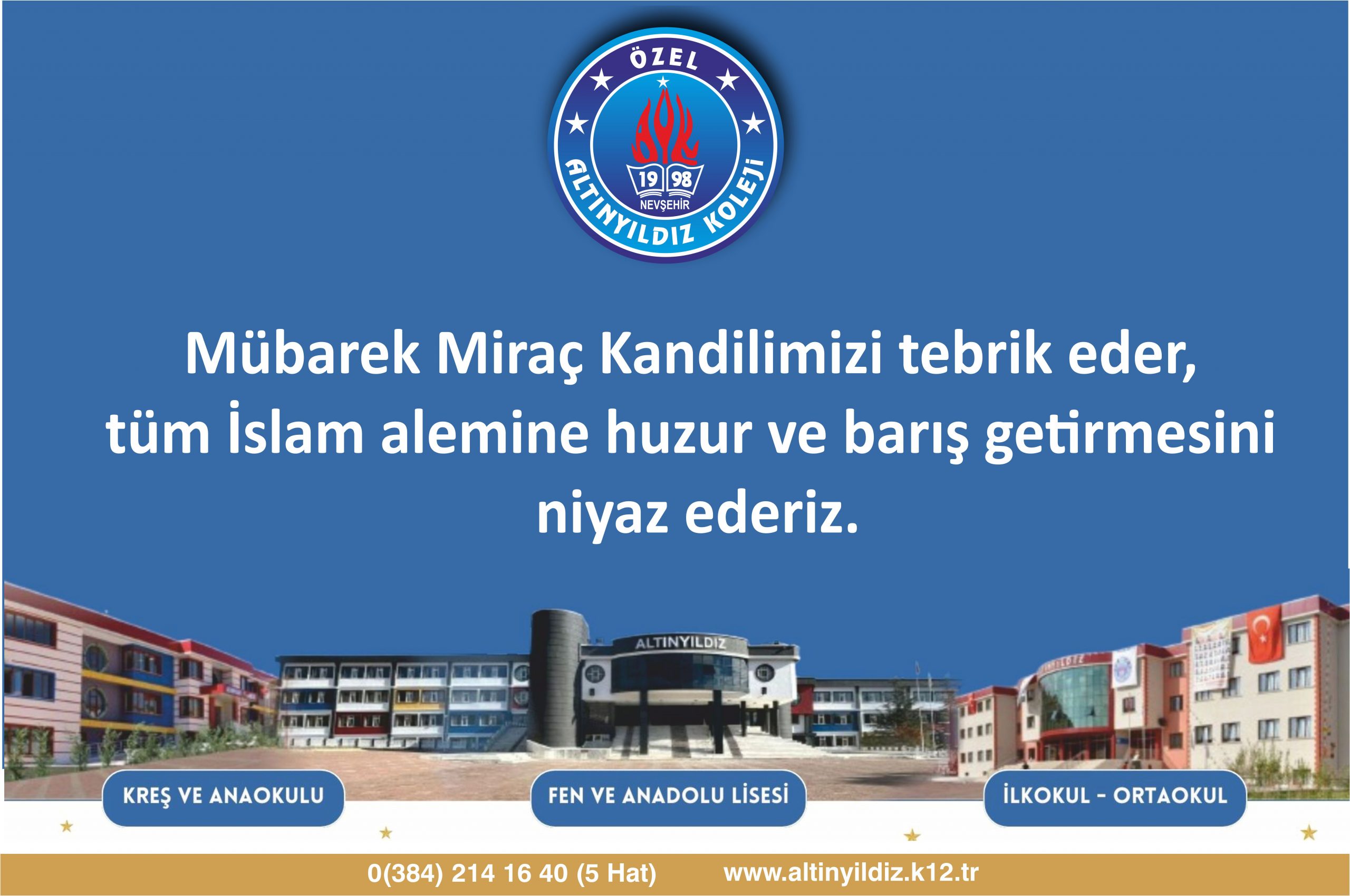 Özel Altınyıldız Koleji Yönetim Kurulu Başkanı Ragıp Özaltın mesaj yayınlayarak bütün Müslüman aleminin Miraç gecesini kutladı.