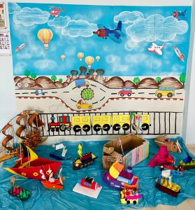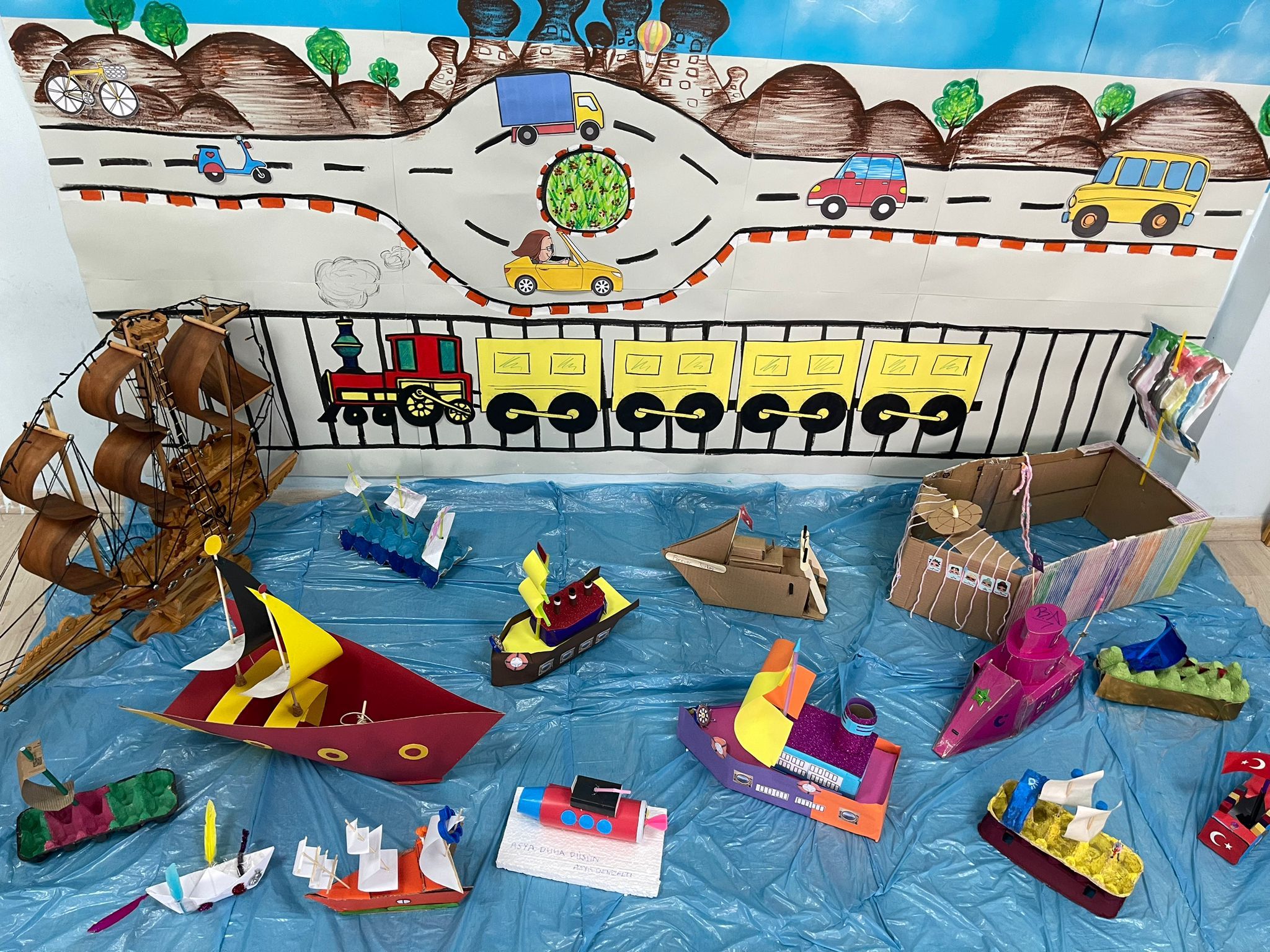 Özel Altınyıldız Kreş ve Anaokulunda Bal Çiçekleri Sınıfı ‘Taşıtlar Teması’ kapsamında aile katılımı ile su taşıtlarının maketlerini yaptılar.