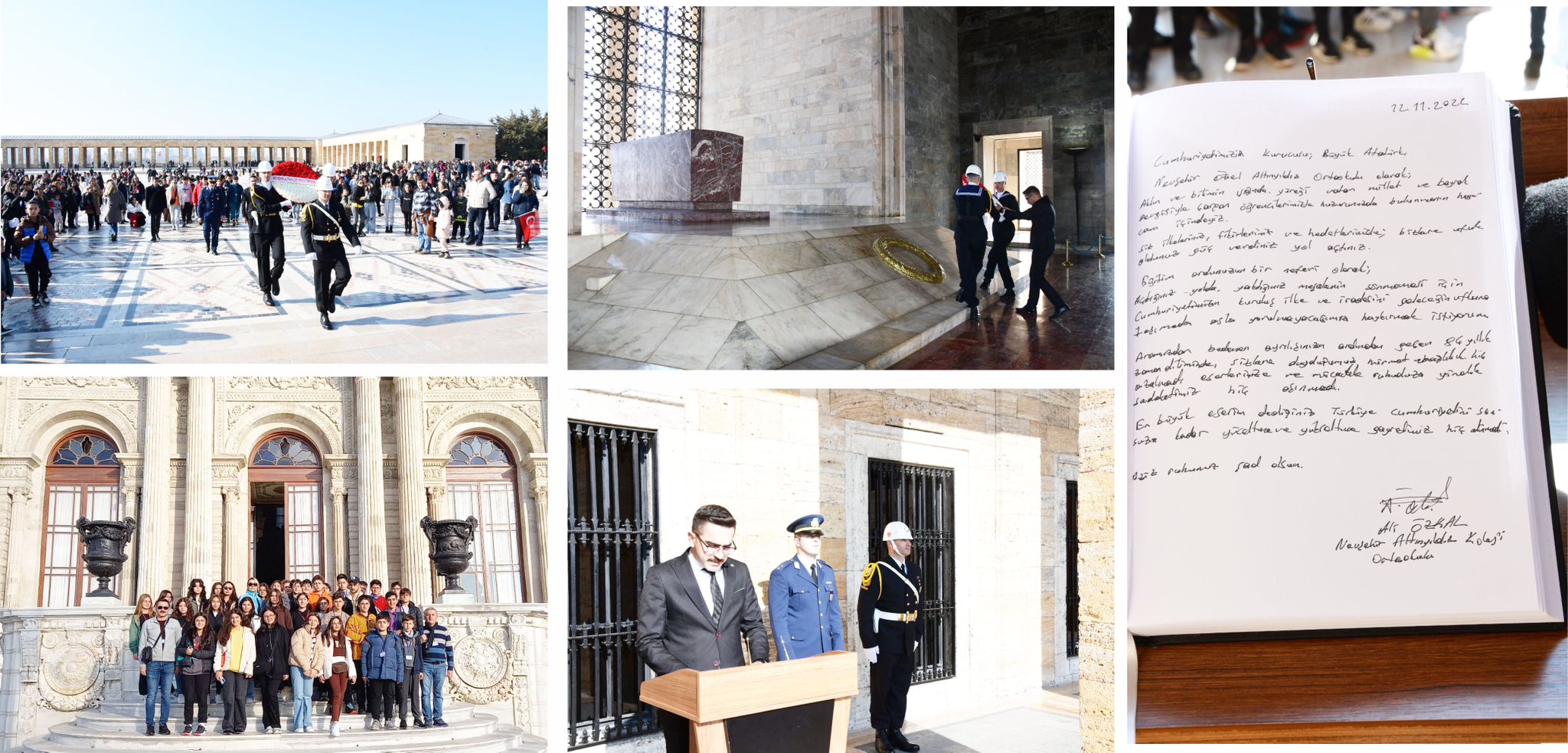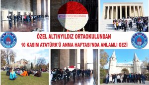 İlk durak olan Ankara’da 1. ve 2. Meclis ziyaretleri kapsamında, T.C. İnkılap Tarihi ve Atatürkçülük dersini yerinde ders işleme fırsatı bulan öğrencilerimiz daha sonra öğretmenleri eşliğinde Anıtkabir’e geçerek resmi tören çerçevesinde askerlerin taşıdığı Özel Altınyıldız Ortaokulu çelengini Ata’nın mozolesine bıraktılar ve saygı duruşunda bulundular. Sosyal Bilgiler Öğretmenimiz Ali ÖZKAL Anıtkabir özel defterine yazdığı Atatürk ile ilgili düşüncelerini okurken; duygulanan bazı öğrencilerimiz gözyaşlarını tutamadılar.