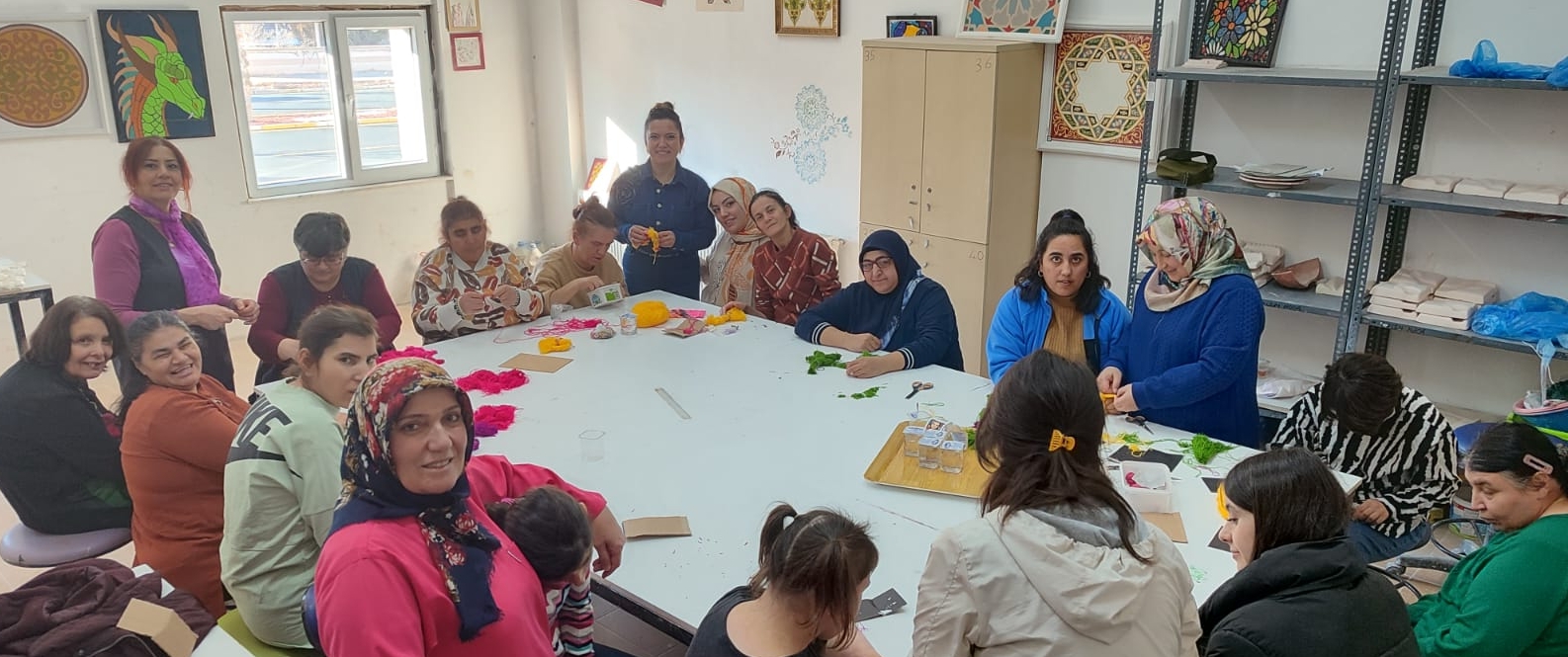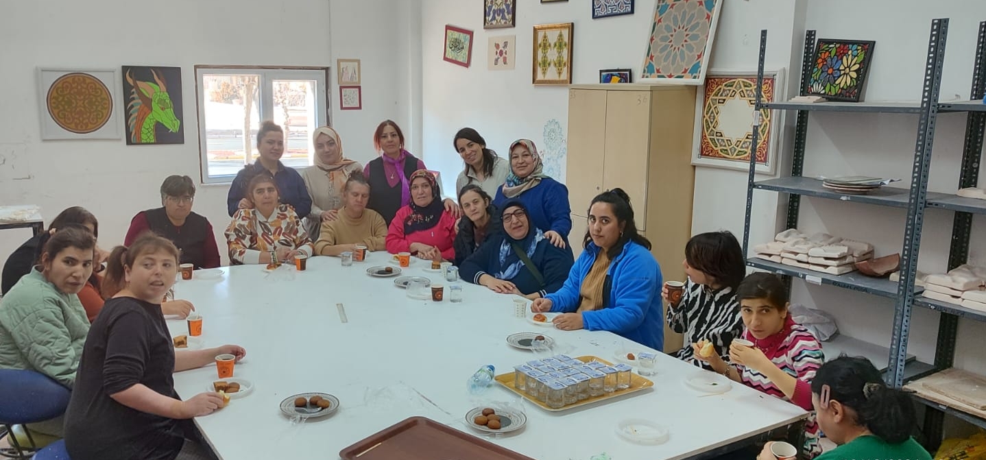Ürgüp 80. Yıl Hanife Memiş Aksoy Bakım Rehabilitasyon ve Aile Danışma Merkezi’nde kalan özel gereksinimli bireylere yönelik yetkililer eşliğinde NEVÜ Avanos Güzel Sanatlar MYO’ya ziyaret düzenlendi. Okul yetkilileri ve personeli tarafından karşılanarak misafir edilen özel gereksinimli bireyler daha sonra Öğr. Gör. Şükran Doğru Gürpınar koordinesinde ve ‘Sosyal Sorumluluk Dersi’ kapsamında, NEVÜ Güzel Sanatlar Fakültesi Seramik-Cam Bölümü öğrencileriyle birlikte atölyede orlon ip ile bebek anahtarlık yapımını deneyimledi.