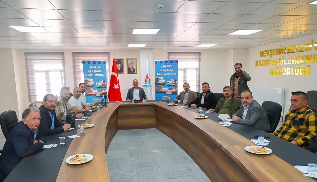 Belediye Başkanı Dr. Mehmet Savran, şehir içi toplu taşıma araçlarında kartlı sisteme geçiş ile ilgili kamuoyunu bilgilendirmek için gazetecilerle bir araya geldi. Nevşehir Belediyesi Kadın ve Aile Hizmetleri Müdürlüğü Toplantı Salonu’nda gerçekleştirilen toplantıya gazetecilerin yanı sıra Belediye Başkan Yardımcıları Nafiz Dirikoç VE Furkan Feralan ile birlikte özel halk otobüsçüleri temsilcileri de katıldı.