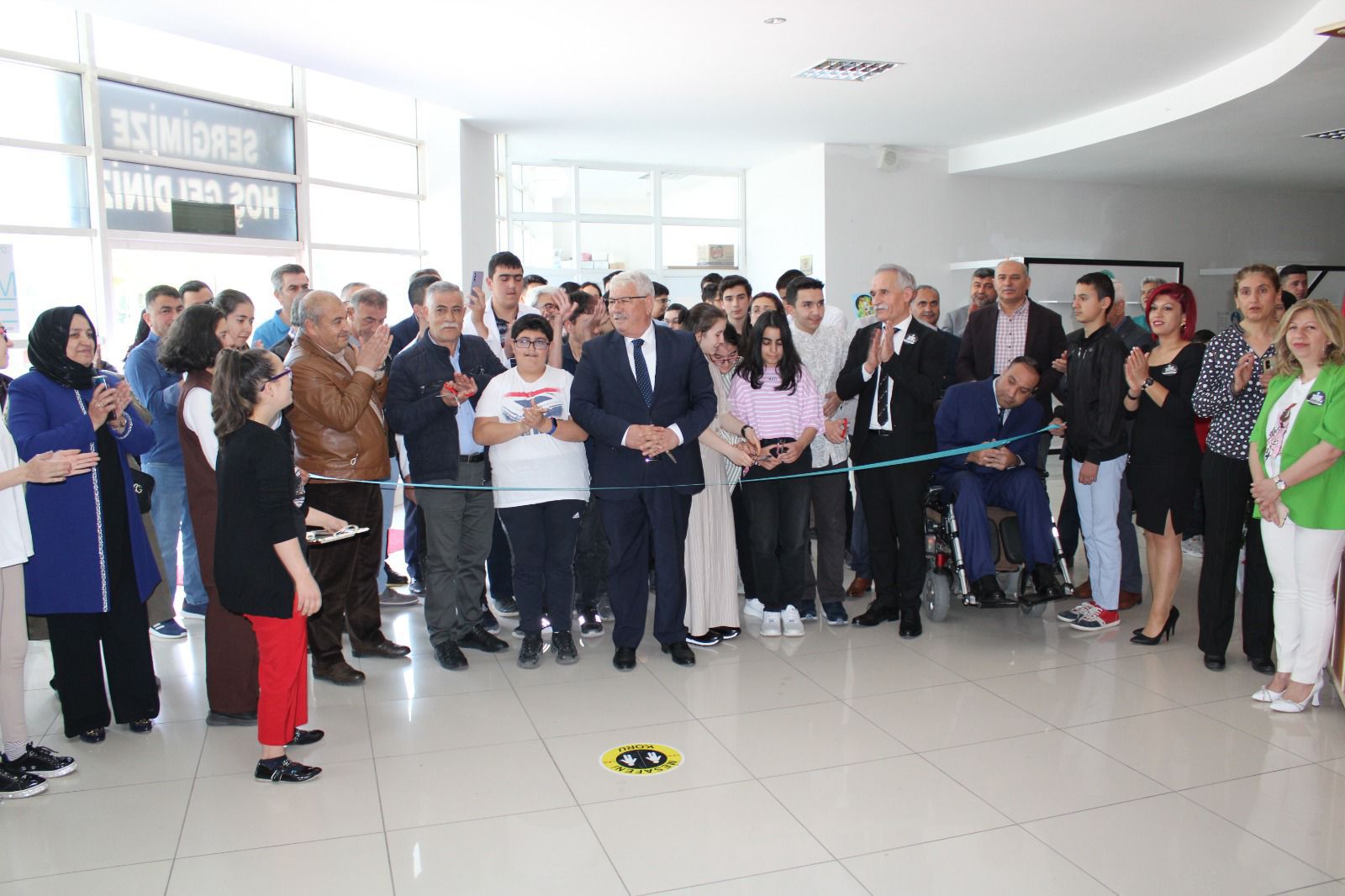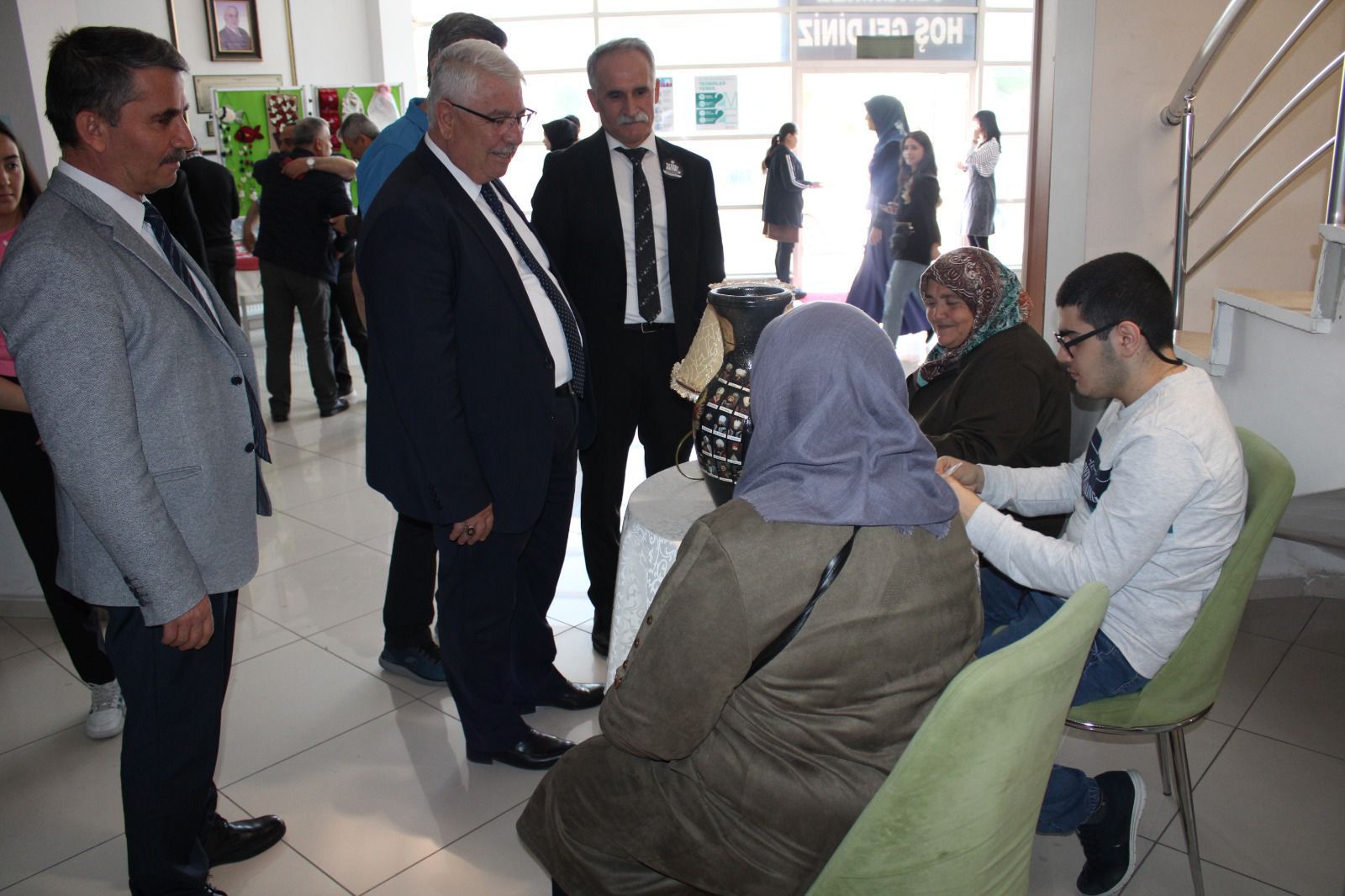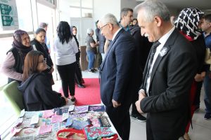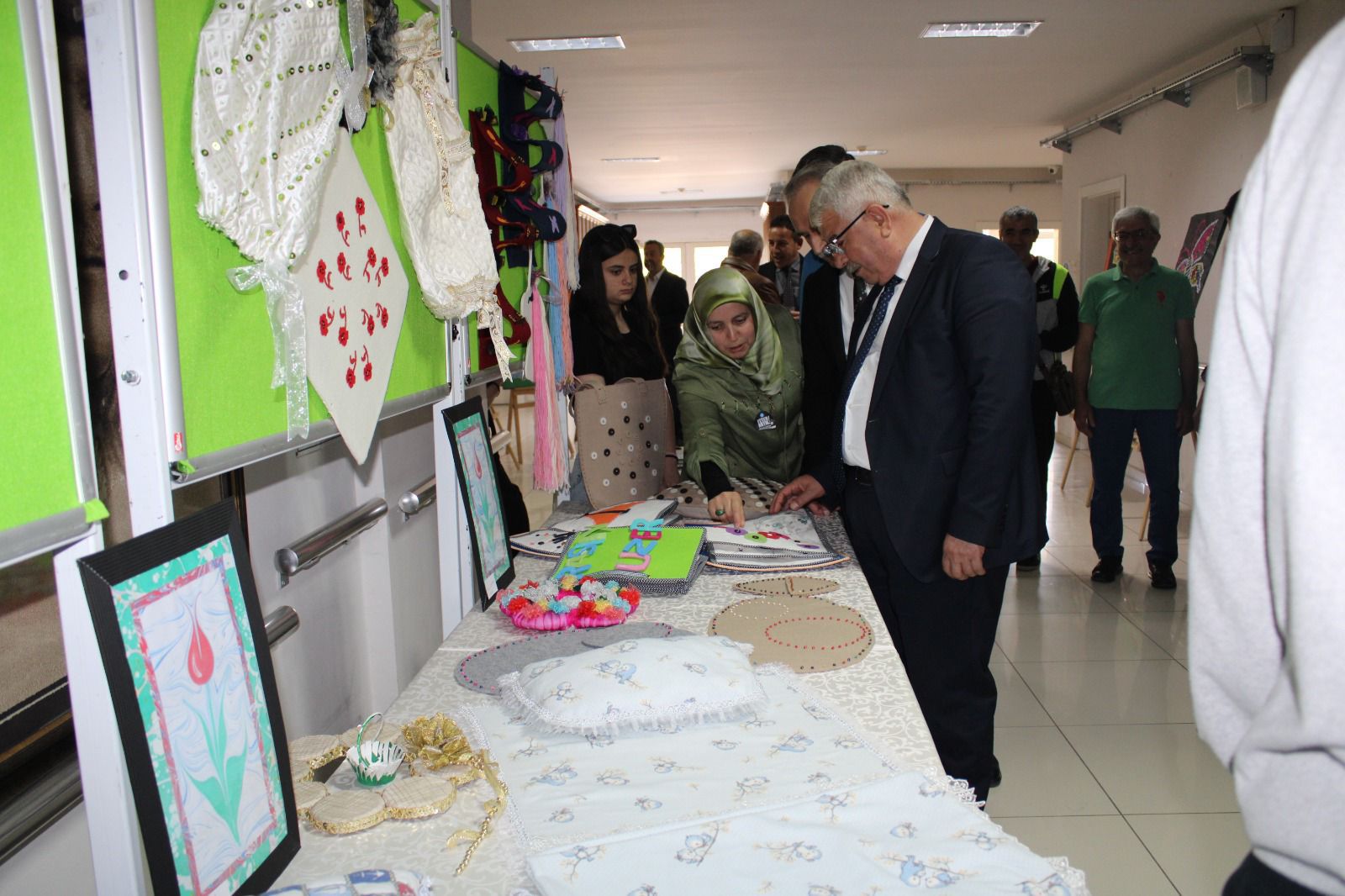İl Milli Eğitim Müdürü Yusuf YAZICI, Aile ve Sosyal Hizmetler İl Müdürü Mahmut SELÇUK, şube müdürleri, idareciler, öğretmenler ve öğrencilerin katılımıyla H.Rasim Uzer Özel Eğitim Meslek Okulu tarafından düzenlenen “Yıl Sonu Karma Sergisi”nin açılışı yapıldı. İl Milli Eğitim Müdürü, sergiyi gezerek eserleri inceledi ve öğrencilerle sohbet etti. Sayın YAZICI, engelli öğrenci ve kardeşlerimizin hayatlarını idame ettirebilmeleri için gerekli becerileri elde edebilmeleri, meslek sahibi olabilmeleri için yapılan çalışmaların öneminden bahsederek engellilere sağlanan imkanlar nedeniyle Devlet Ricaline, Milli Eğitim Bakanlığına ve destek olan herkese teşekkür etti. Engelli çocukları tüm çocuklar gibi insan eksenli bir anlayışla sevgi yumağı ile kucakladıklarını ve onlara hizmetkar olmanın mutluluğunu yaşadıklarını belirterek tüm öğrencileri kutlayarak tebrik etti.