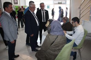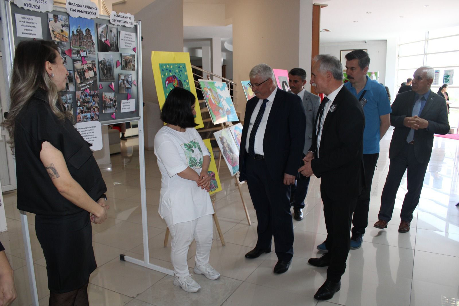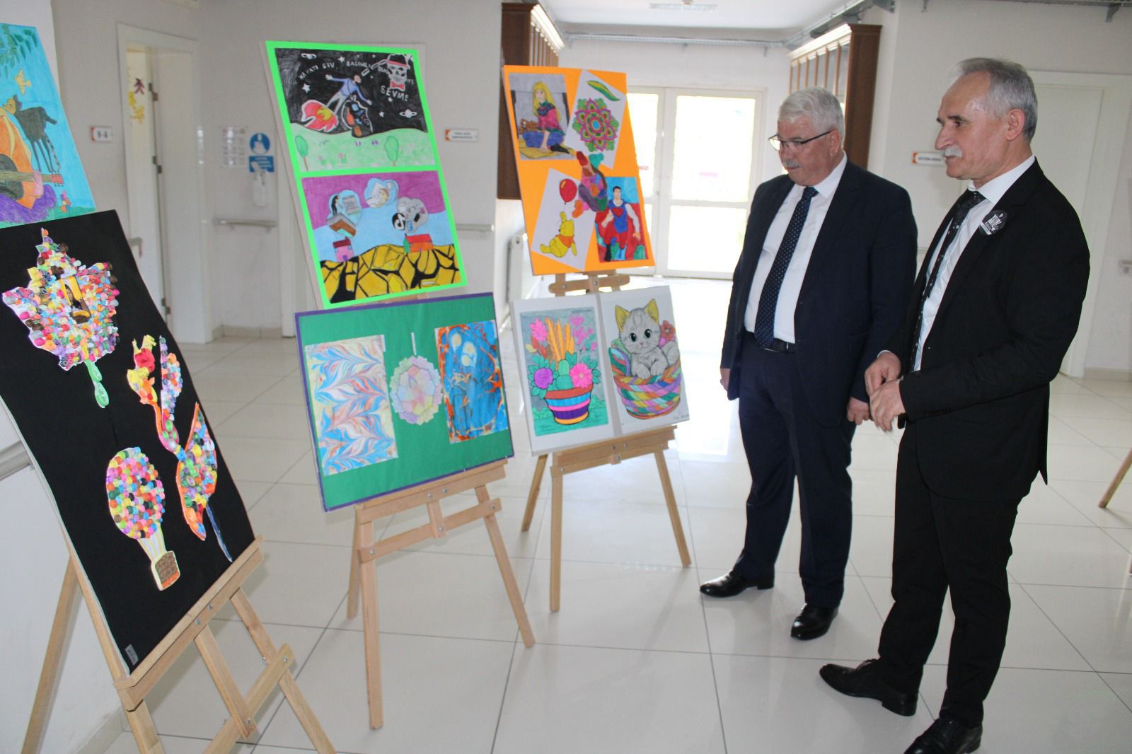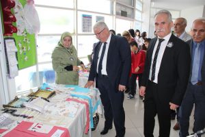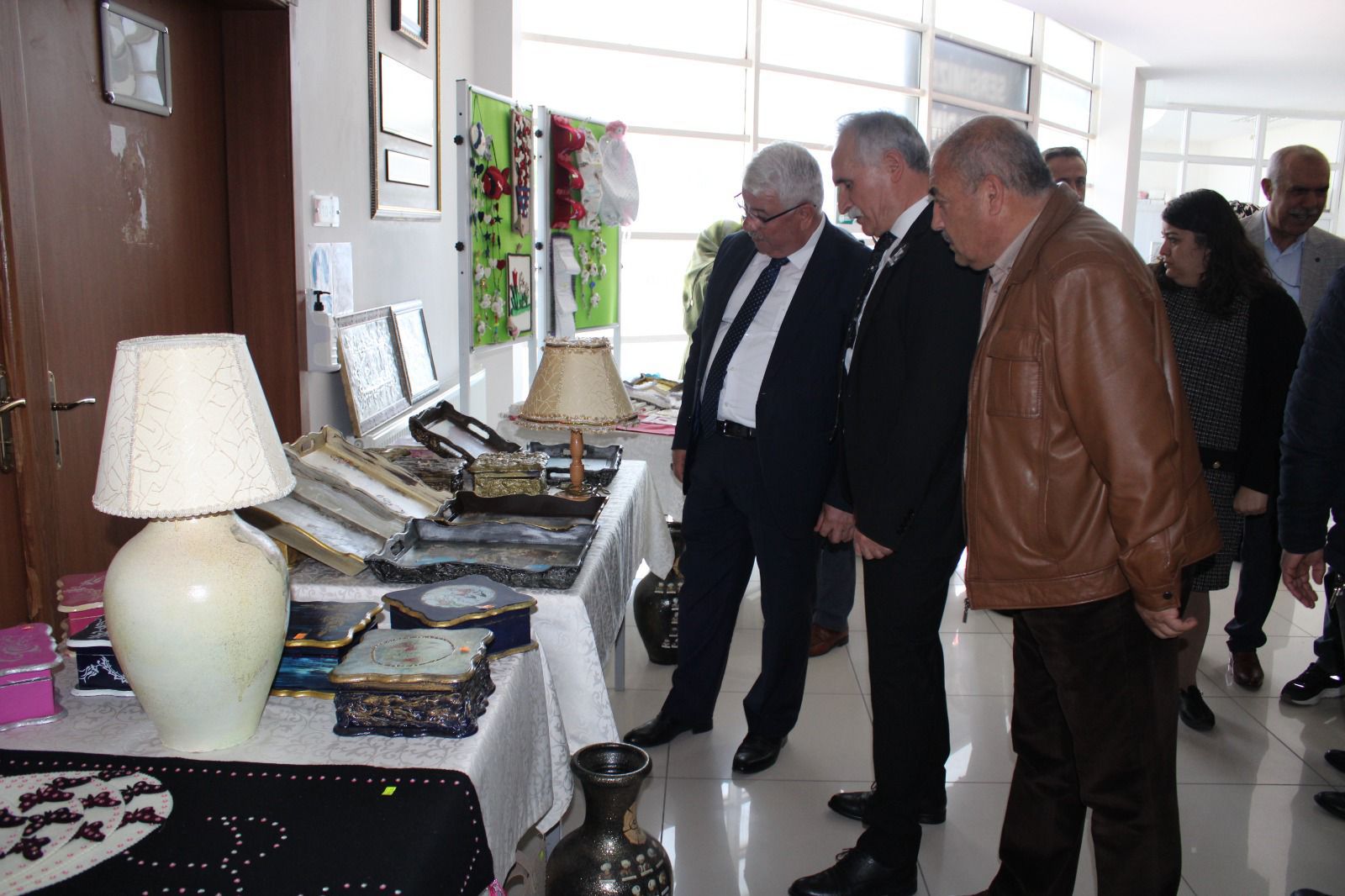 İl Milli Eğitim Müdürü Yusuf YAZICI, Aile ve Sosyal Hizmetler İl Müdürü Mahmut SELÇUK, şube müdürleri, idareciler, öğretmenler ve öğrencilerin katılımıyla H.Rasim Uzer Özel Eğitim Meslek Okulu tarafından düzenlenen “Yıl Sonu Karma Sergisi”nin açılışı yapıldı. İl Milli Eğitim Müdürü, sergiyi gezerek eserleri inceledi ve öğrencilerle sohbet etti. Sayın YAZICI, engelli öğrenci ve kardeşlerimizin hayatlarını idame ettirebilmeleri için gerekli becerileri elde edebilmeleri, meslek sahibi olabilmeleri için yapılan çalışmaların öneminden bahsederek engellilere sağlanan imkanlar nedeniyle Devlet Ricaline, Milli Eğitim Bakanlığına ve destek olan herkese teşekkür etti. Engelli çocukları tüm çocuklar gibi insan eksenli bir anlayışla sevgi yumağı ile kucakladıklarını ve onlara hizmetkar olmanın mutluluğunu yaşadıklarını belirterek tüm öğrencileri kutlayarak tebrik etti.